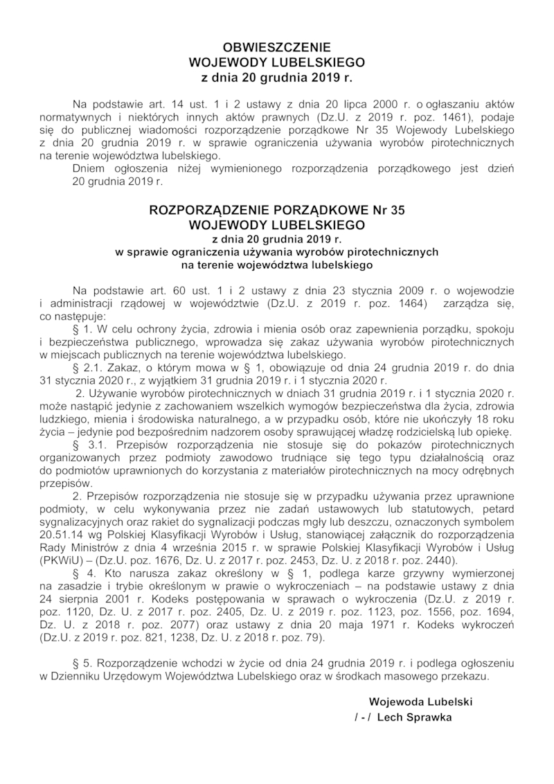 ROZPORZĄDZENIE PORZĄDKOWE WOJEWODY LUBELSKIEGO