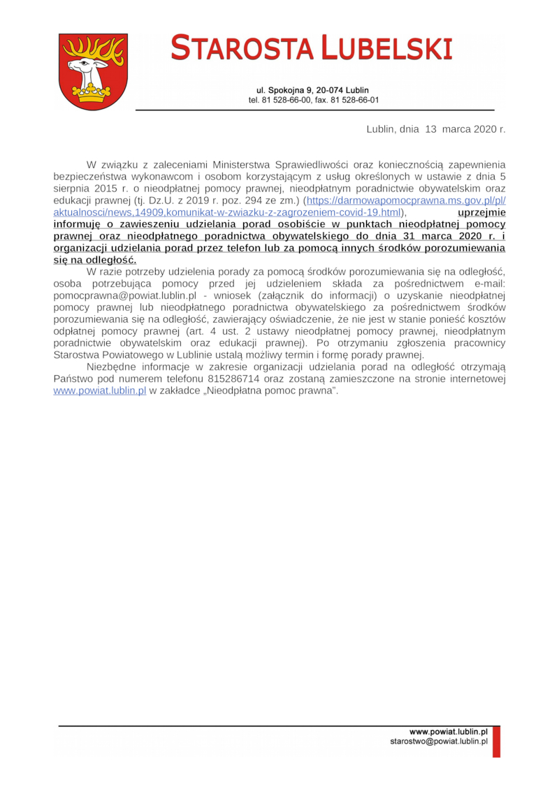 INFORMACJA OD STAROSTY LUBELSKIEGO