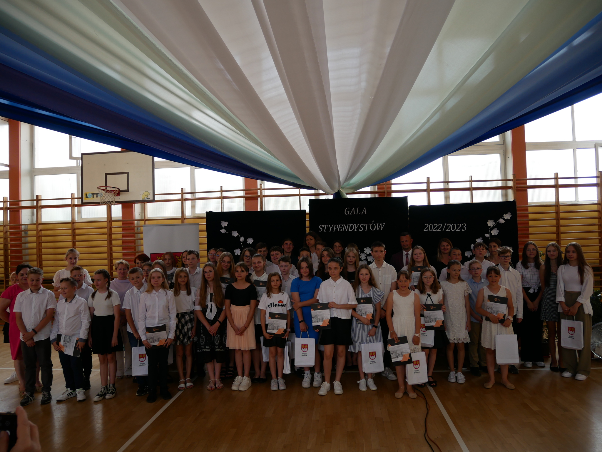 W dniu 26 czerwca br. Wójt Gminy Jastków – Pani Teresa Kot uroczyście wręczyła Stypendia Wójta Gminy Jastków uczniom szkół podstawowych za szczególne osiągnięcia edukacyjne. Wyróżnienia te były wręczone już po raz siódmy. Gospodarzem Gali była Szkoła Podstawowa im. Józefa Piłsudskiego w Jastkowie zaś wśród zaproszonych gości znaleźli się najzdolniejsi uczniowie, rodzice, dyrektorzy szkół i przedszkola, dyrektor Gminnego Ośrodka Kultury i Sportu w Jastkowie oraz Radni Gminy Jastków. Dyplomy wraz z gratulacjami dla wyróżnionej młodzieży wręczyła osobiście Pani Wójt Teresa Kot wraz z Przewodniczącym Rady Gminy Jastków – Panem Markiem Wieczerzakiem.