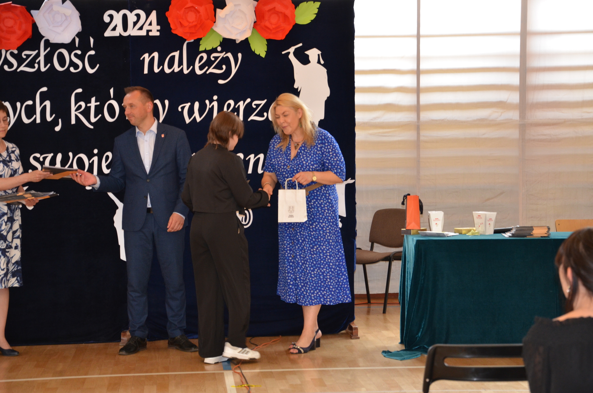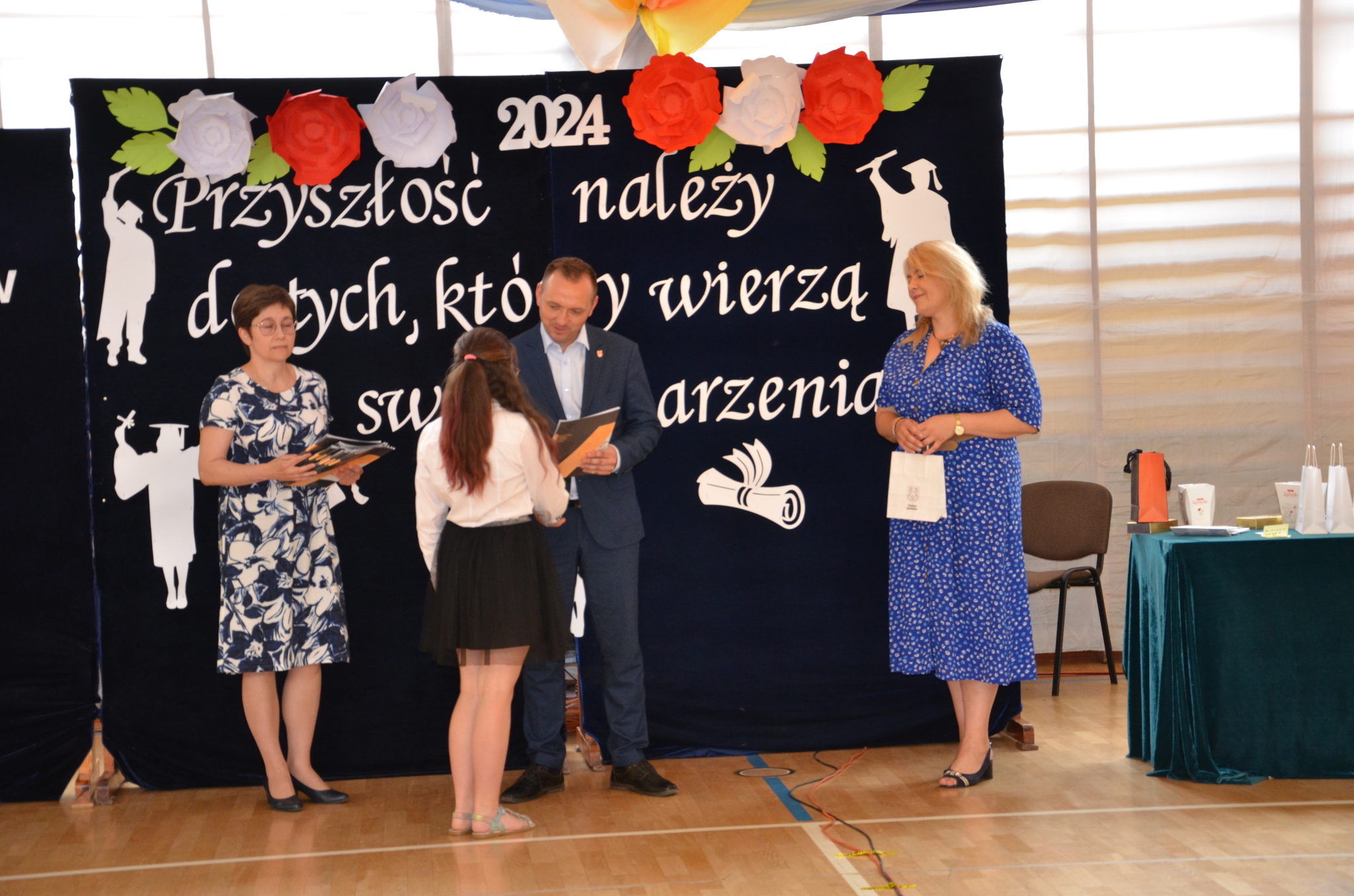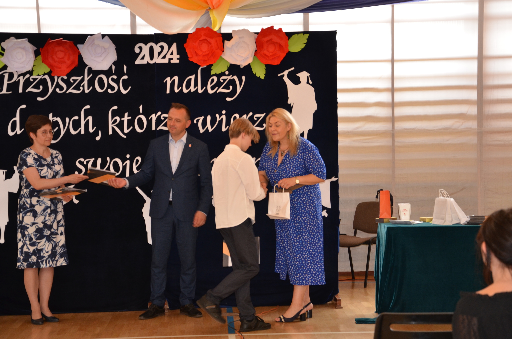 Pan Wójt wręczył uczniom stypendium i przekazał młodzieży życzenia dalszych sukcesów, podziękował rodzicom za trud włożony w wychowanie dzieci, a także dyrektorom i nauczycielom za wsparcie młodzieży w procesie edukacji.