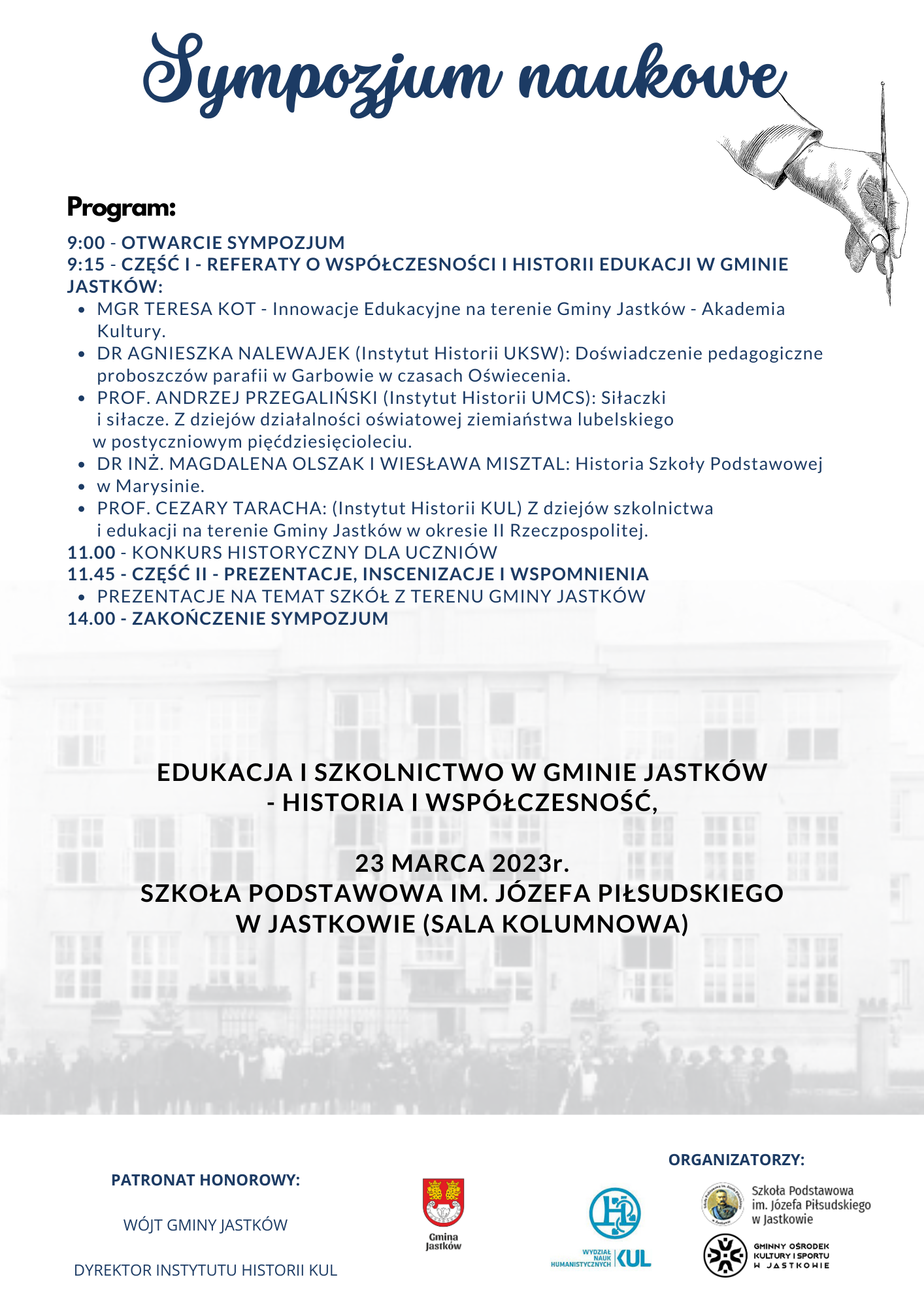 SYMPOZJUM NAUKOWE, KTÓRE ODBĘDZIE SIĘ 23 MARCA 2023 W SZKOLE PODSTAWOWEJ W JASTKOWIE