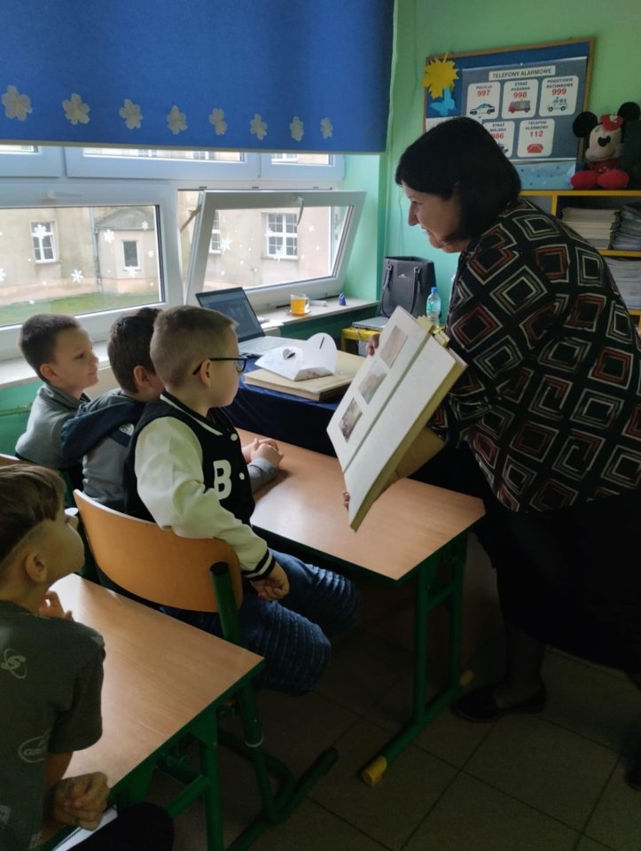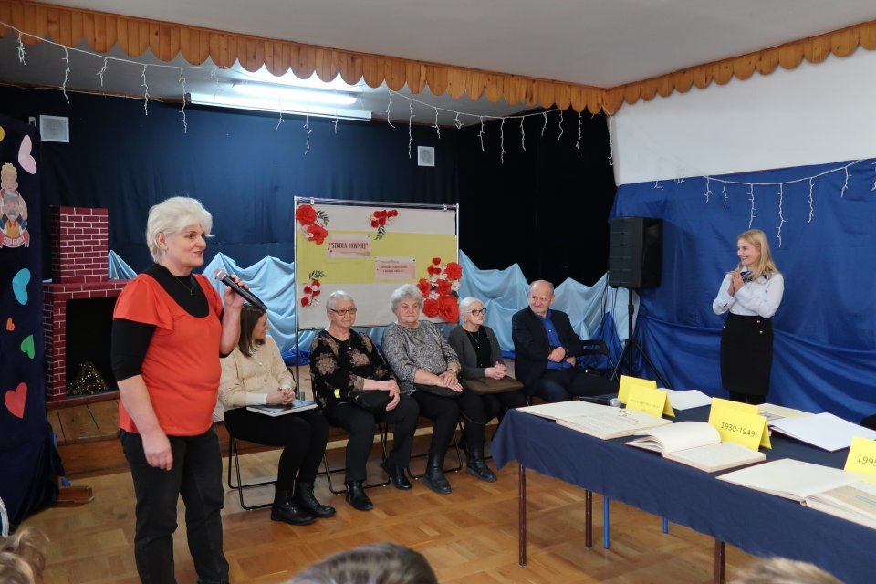 Panie nauczycielki mówiły o tym, jak wówczas wyglądało prowadzenie lekcji i ocenianie, a także jakie było podejście uczniów do nauki i ich zaangażowanie w życie szkoły. Dowiedzieliśmy się, jak dawniej przebiegały przygotowania i obchody Narodowego Święta Niepodległości – 11 listopada.