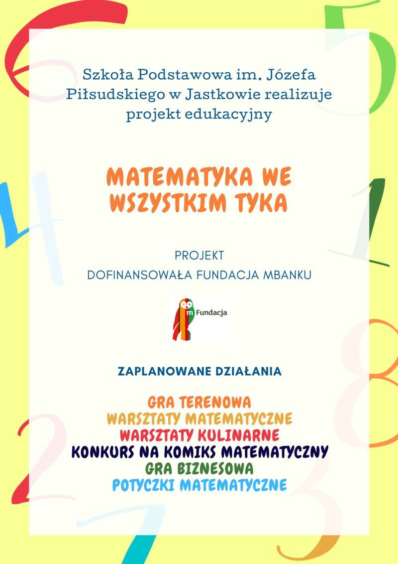 SZKOŁA PODSTAWOWA IM. JÓZEFA PIŁSUDSKIEGO W JASTKOWIE REALIZUJE PROJEKT EDUKACYJNY MATEMATYKA WE WSZYSTKIM TYKA
