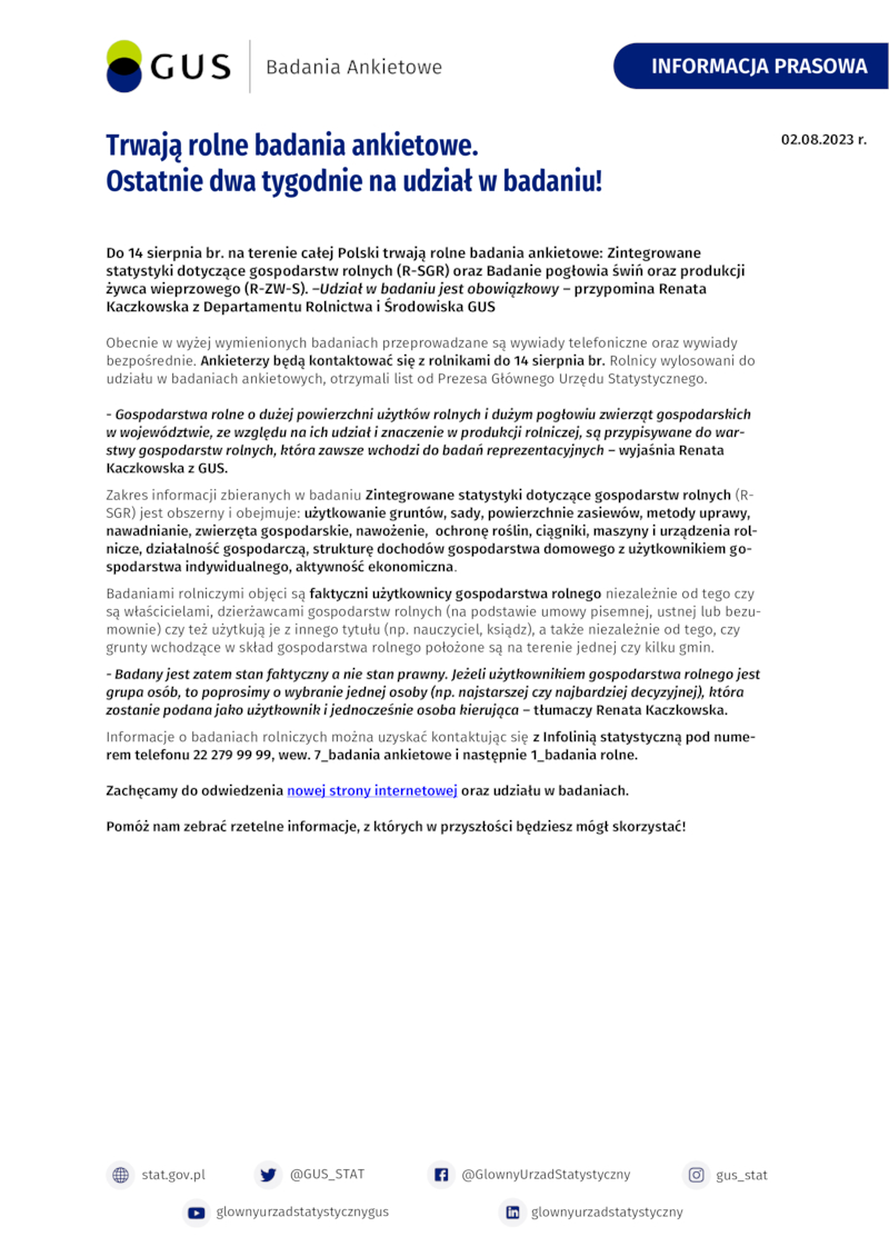 TO JUŻ OSTATNI MOMENT NA UDZIAŁ W „MAŁYM SPISIE ROLNYM”