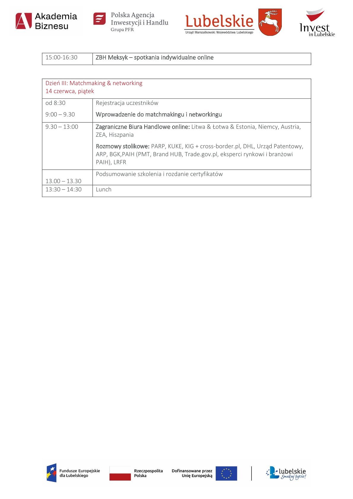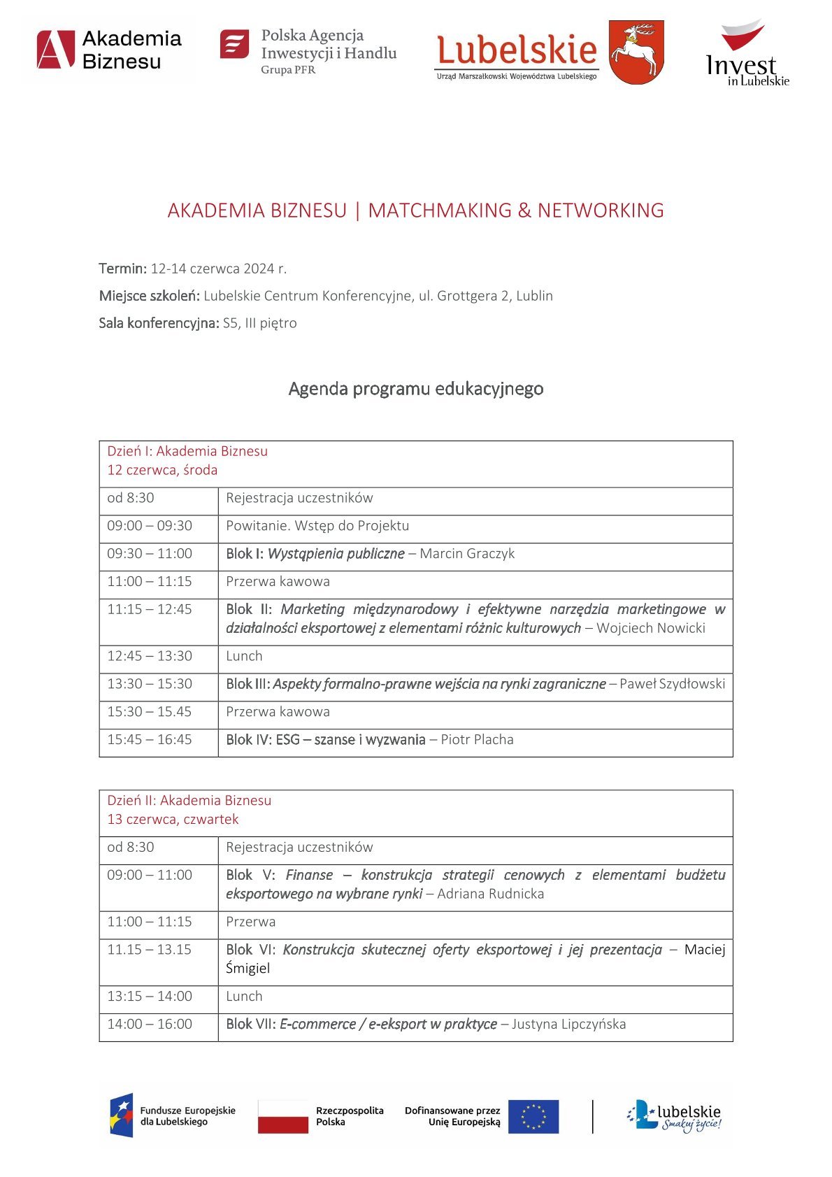 w dniach 12-14 czerwca 2024 r. Urząd Marszałkowski Województwa Lubelskiego wraz z Polską Agencją Inwestycji i Handlu S. A. organizuje trzydniowe warsztaty pn. Akademia Biznesu dla MŚP z województwa lubelskiego.