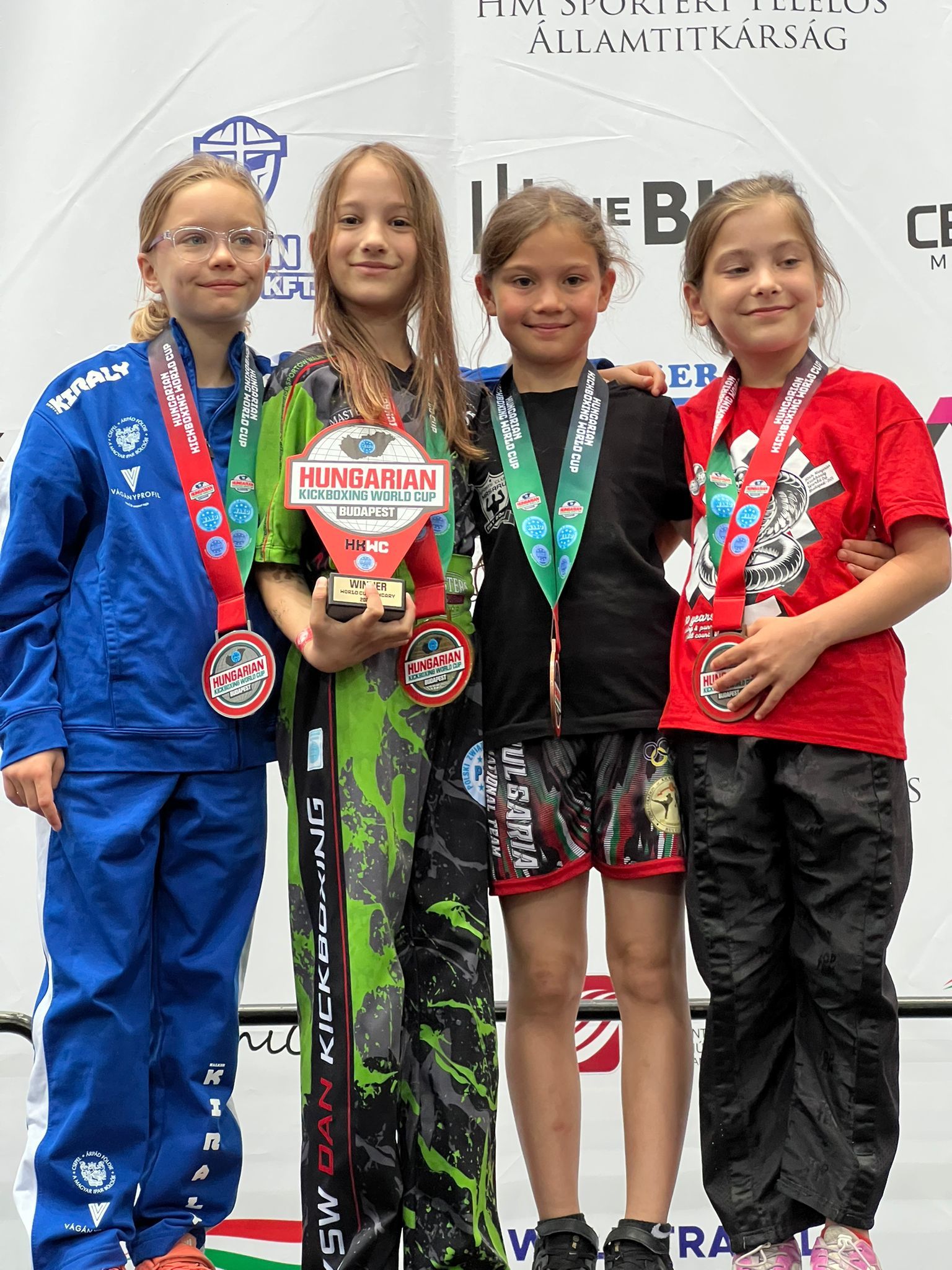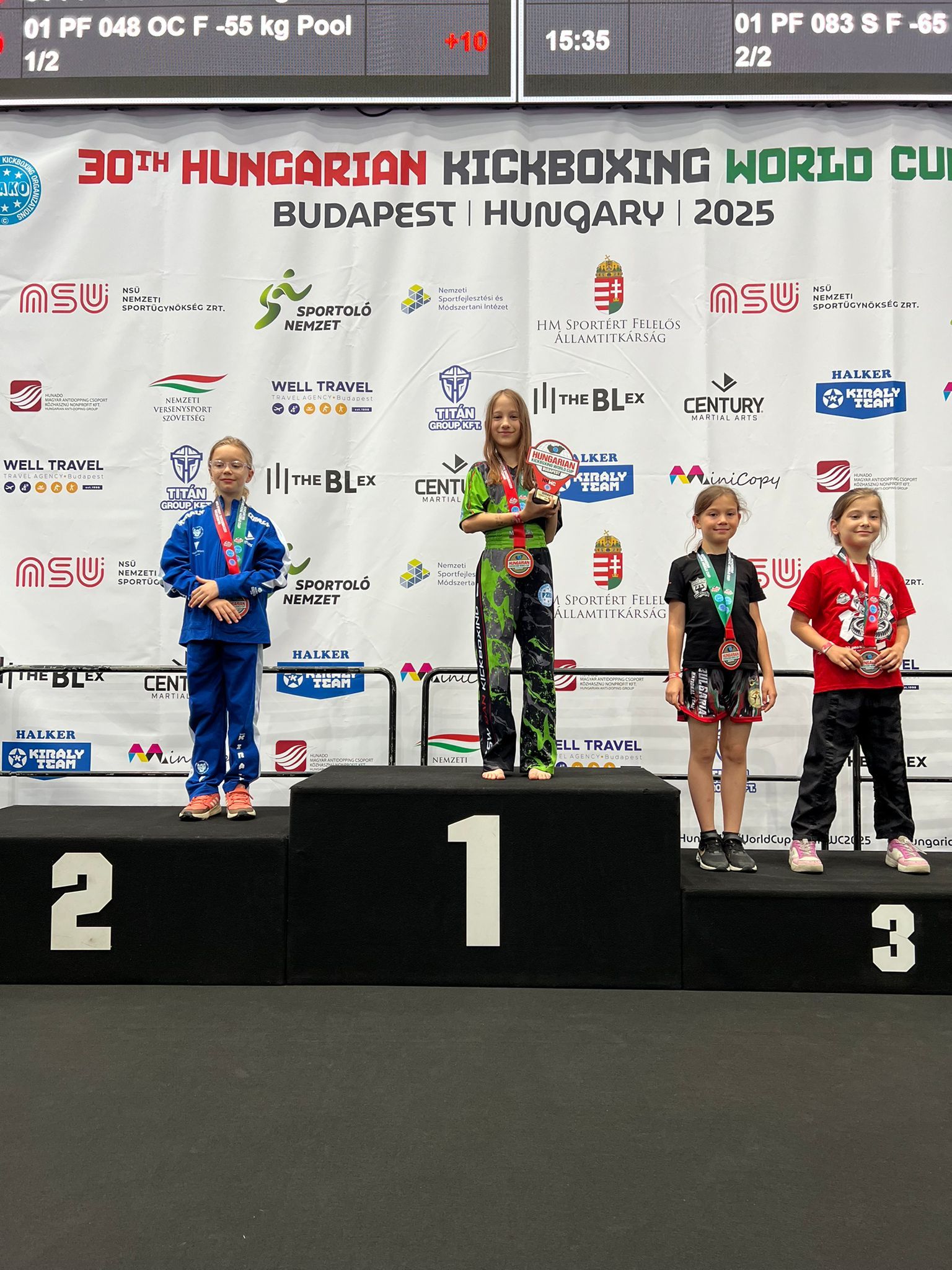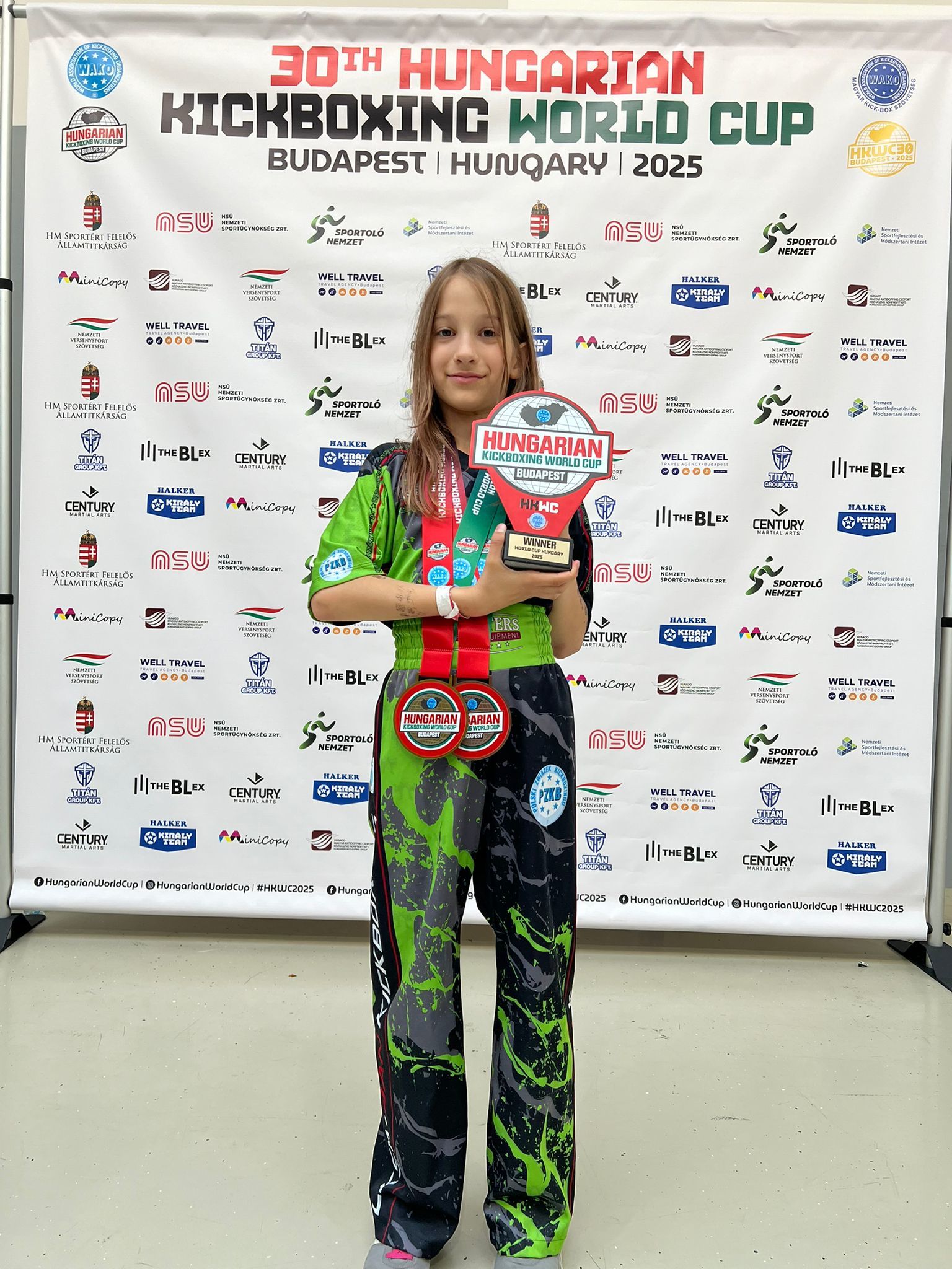W dniach 13-15 czerwca w Budapeszcie odbyła się trzydziesta edycja Pucharu Świata w kickboxingu Hungarian Kickboxing World Cup, połączona z turniejem Hungarian Open w kategoriach nierankingowych i klasie beginner (dla mniej doświadczonych zawodników). W tym roku do naddunajskiej stolicy zjechało ponad 3000 zawodników z 52 krajów startujących w ponad 4600 startach indywidualnych. Imprezę rozgrywano na szesnastu polach walk i czterech ringach. Z przyjemnością informujemy, że uczennica Szkoły Podstawowej w Snopkowie Jagoda Staińska reprezentując Lubelski Klub Sportów Walki Dan zdobyła złoty medal i Puchar Świata w kategorii pointfighting dzieci -27 kg pokonując zawodniczki z Chorwacji, Bułgarii i w finale przed czasem Węgierkę. Jagoda zdobyła także brązowy medal w wyższej kategorii -30 kg pokonując Bułgarkę i ulegając w półfinale jednym punktem zawodniczce węgierskiej.