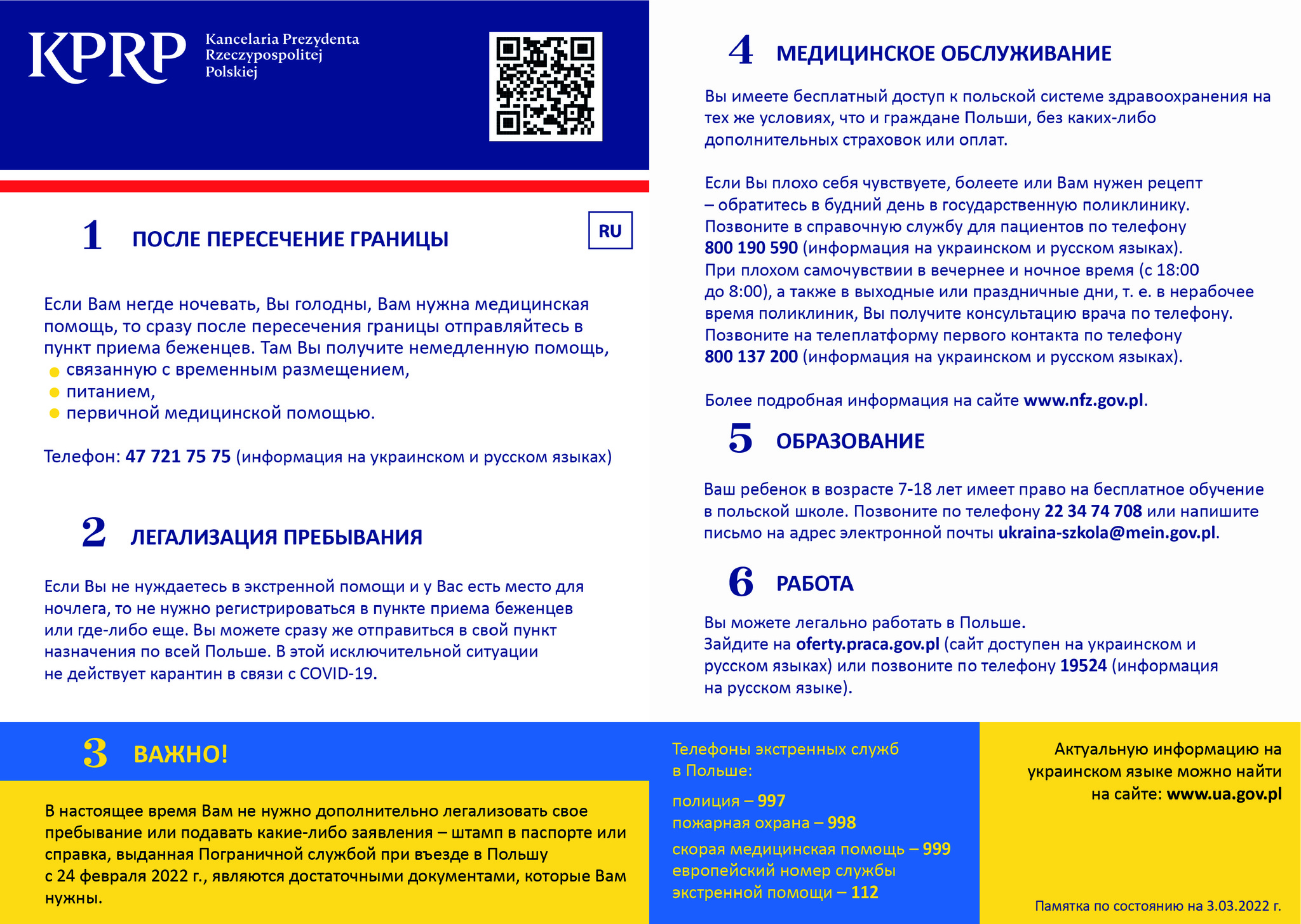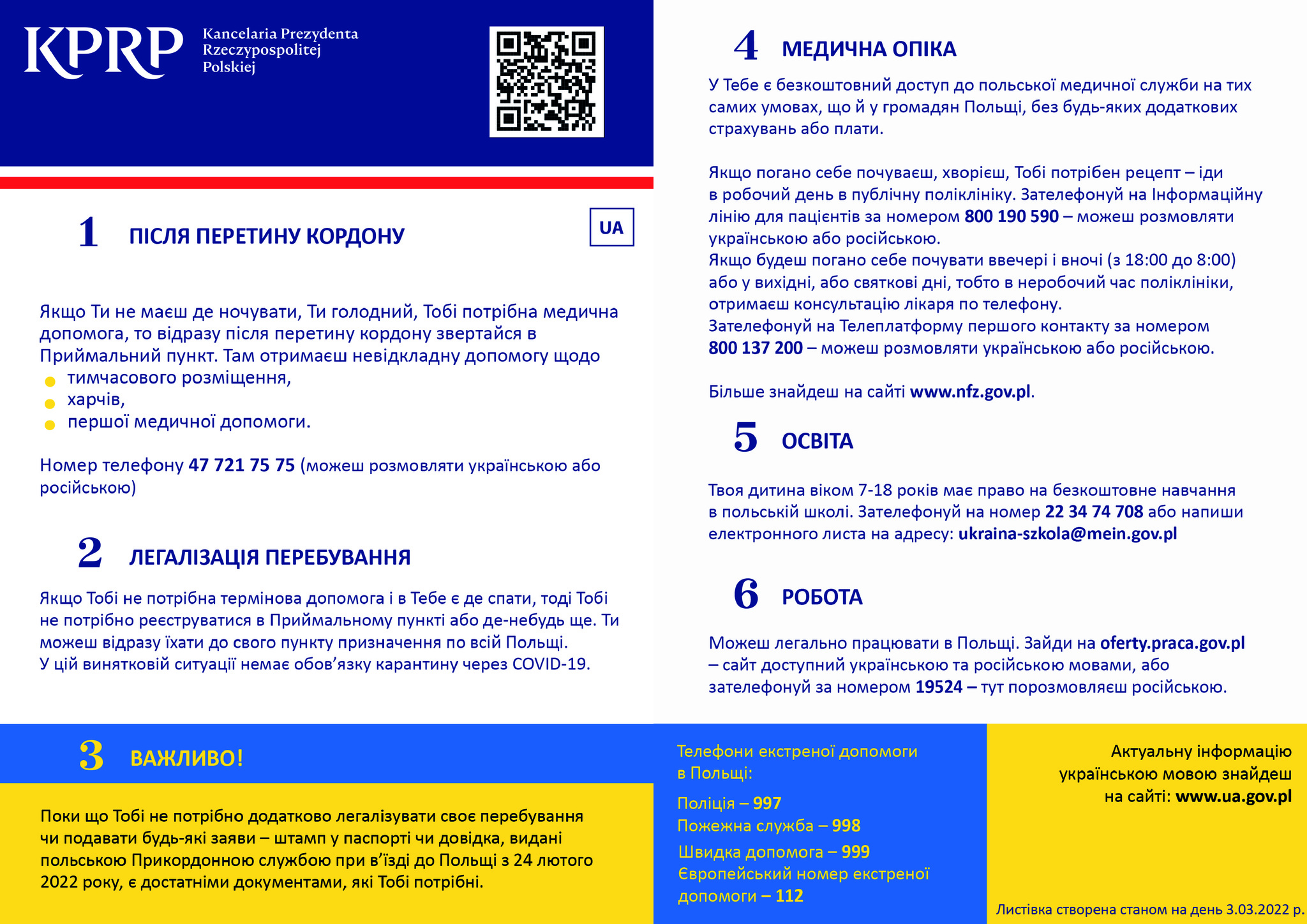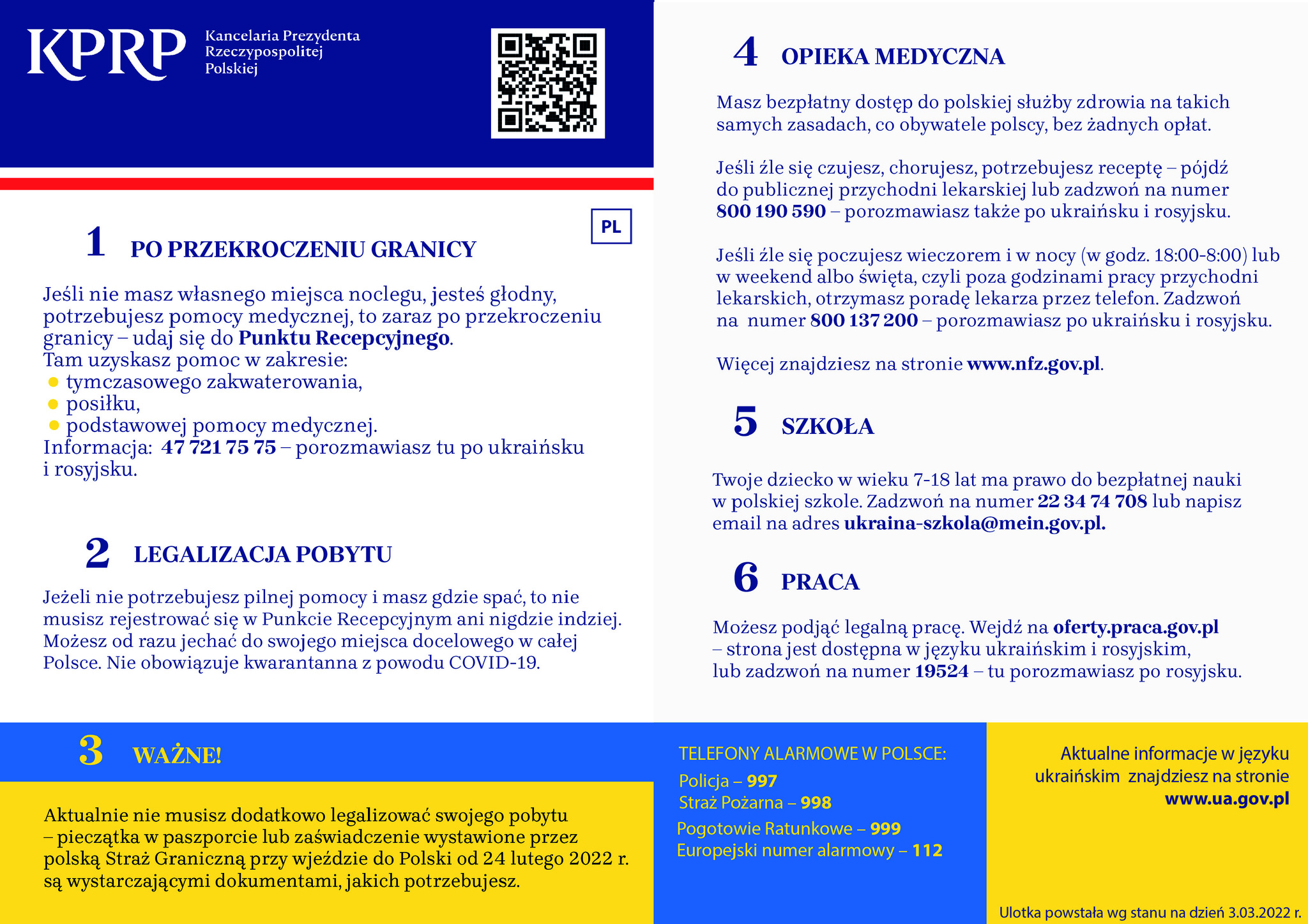 ULOTKI INFORMACYJNE DLA UCHODŹCÓW WOJENNYCH Z UKRAINY