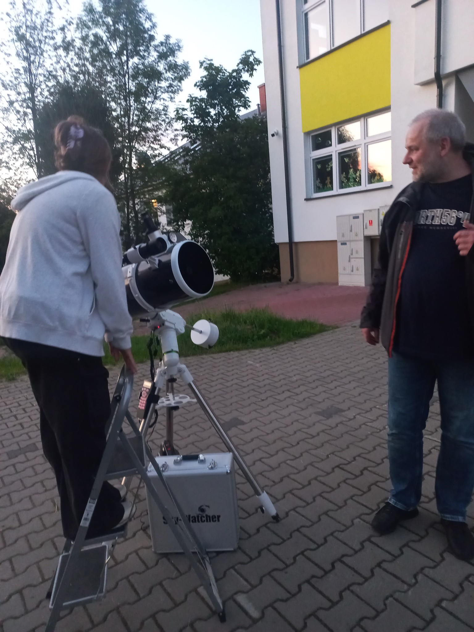 21 maja wieczorem odbyły się drugie warsztaty z cyklu "Niebo nad Snopkowem", realizowane w ramach programu "Ekopracownia - zielone serce szkoły". Tym razem bohaterem wieczoru okazał się Księżyc. Za pomocą teleskopu oraz lornetek przyglądaliśmy się powierzchni naszego naturalnego satelity, rozpoznając m.in. kratery księżycowe (Kopernik czy Kepler) oraz morza - Morze Przesileń, Morze Chmur, Morze Spokoju i wiele innych. Dodatkowo udało się zaobserwować przelot stacji ISS oraz kilka meteorów.