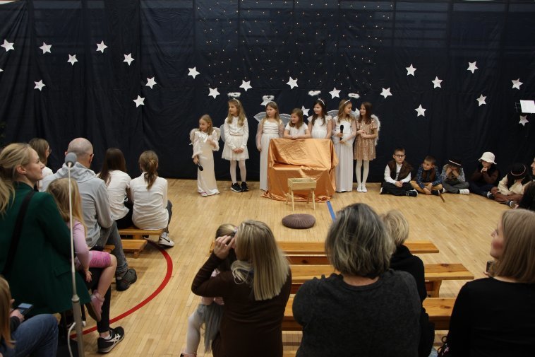 W niedzielę, 12 stycznia 2025 roku, odbył się w naszej szkole "Wieczór kolęd" zorganizowany przez panie Marię Szkutnik i Martę Duk. Wystąpili uczniowie i absolwenci szkoły w Snopkowie oraz Koło Gospodyń Wiejskich Snopków. Na początku na scenie pojawili się uczniowie klas drugich i zaprezentowali swój występ jasełkowy, który wszyscy zgromadzeni goście oglądali z wielkim wzruszeniem - choć Boże Narodzenie już dawno za nami. Następnie mogliśmy usłyszeć przepiękne pieśni i kolędy. Ewa Pawłot zaśpiewała „Mario, czy już wiesz”, Magda Sagan – „Jest taki dzień”, Ela Sagan – „Kolędę Maryi”, szkolny chór - „Cichą noc” i „Raz w roku”. KGW Snopków, wspierane przez panią Paulinę Multan, akompaniującą na pianinie, oraz przez Bartosza Kaweckiego, grającego na gitarze, wykonało wiązankę kolęd - „O, Gwiazdo Betlejemska”, „A wczoraj z wieczora” i „Pasterze mili”. Na koniec wybrzmiało „Od serca do ucha” wyśpiewane przez Magdę i Elżbietę Sagan, a potem rozpoczęło się wspólne kolędowanie. Atmosfera w sali gimnastycznej była naprawdę wyjątkowa i bardzo radosna. Zachęcamy do zapoznania się z dźwiękową relacją z tego wydarzenia. Dziękujemy wszystkim, którzy zechcieli wystąpić oraz wszystkim, którzy przybyli do Snopkowa!
