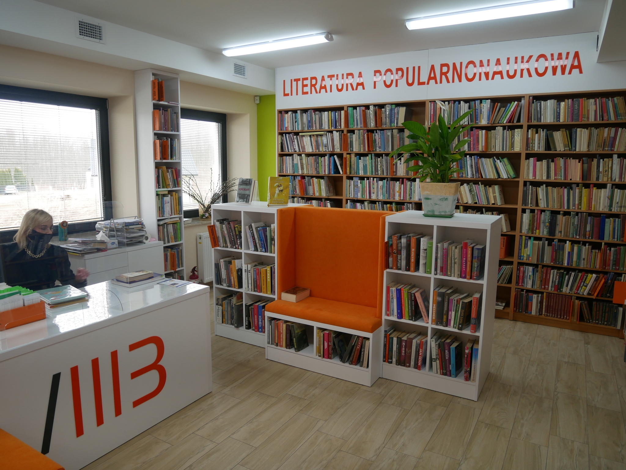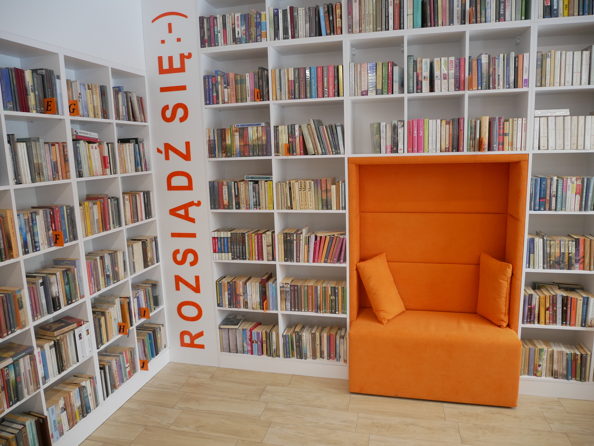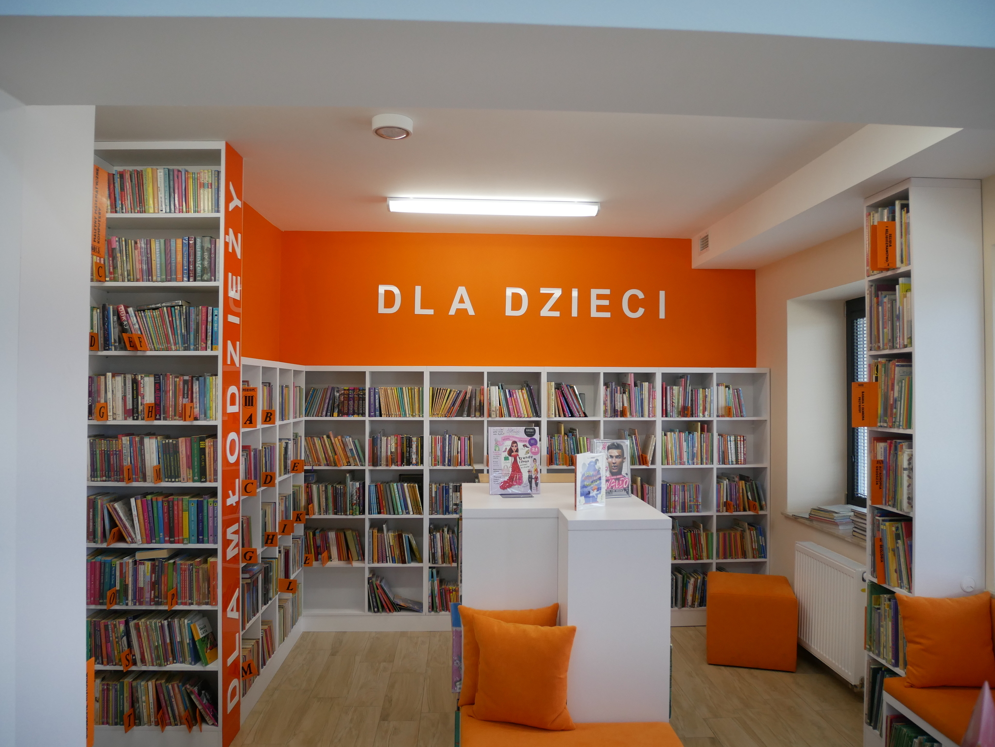 Wyposażenie i meble biblioteczne zostały zaprojektowane przez projektantkę Annę Bartuzi, zachwyt i słowa uznania czytelników świadczą o dobrze wykonanej pracy pani Anny. W nowej bibliotece jest energetycznie i radośnie. Przygotowane pufy i siedziska zachęcają do niespiesznego wyboru lektury.