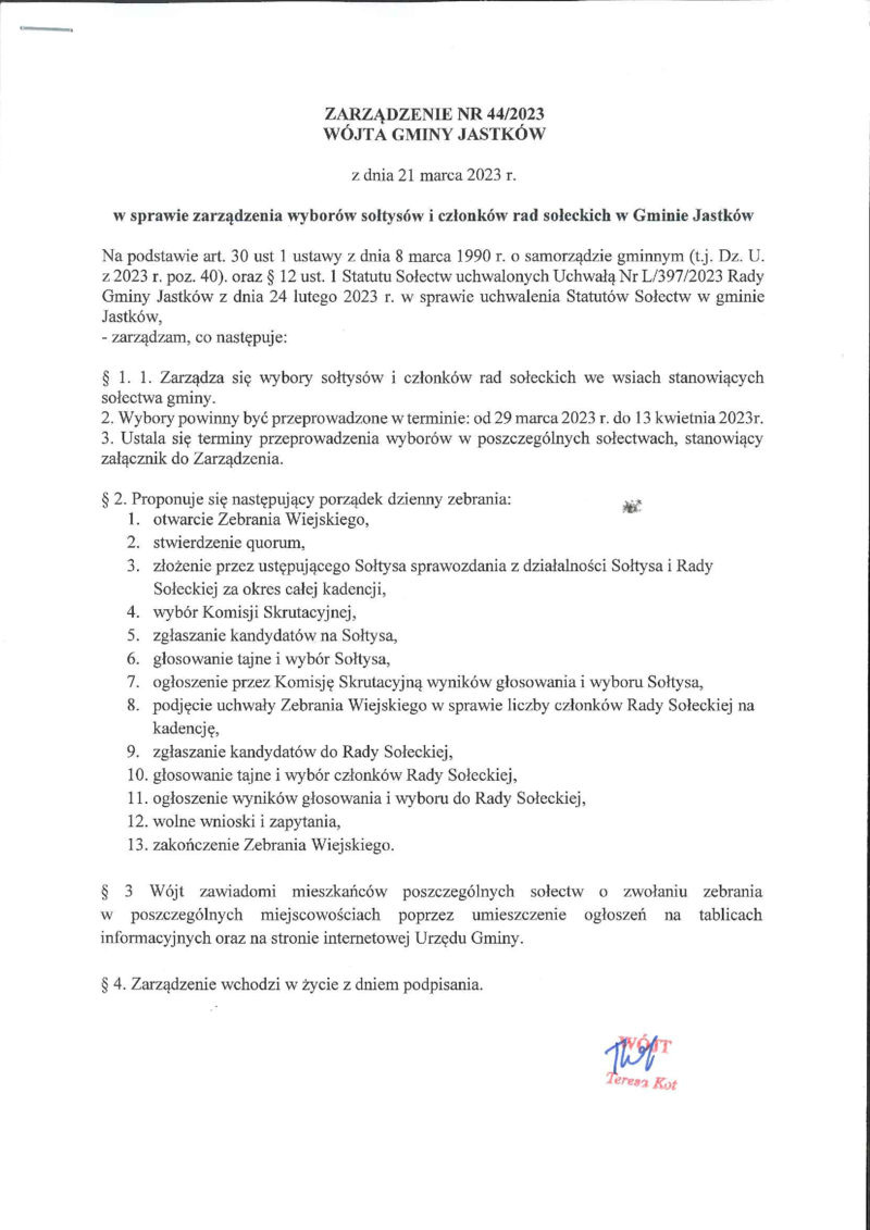 WYBORY SOŁTYSÓW I CZŁONKÓW RAD SOŁECKICH W GMINIE JASTKÓW