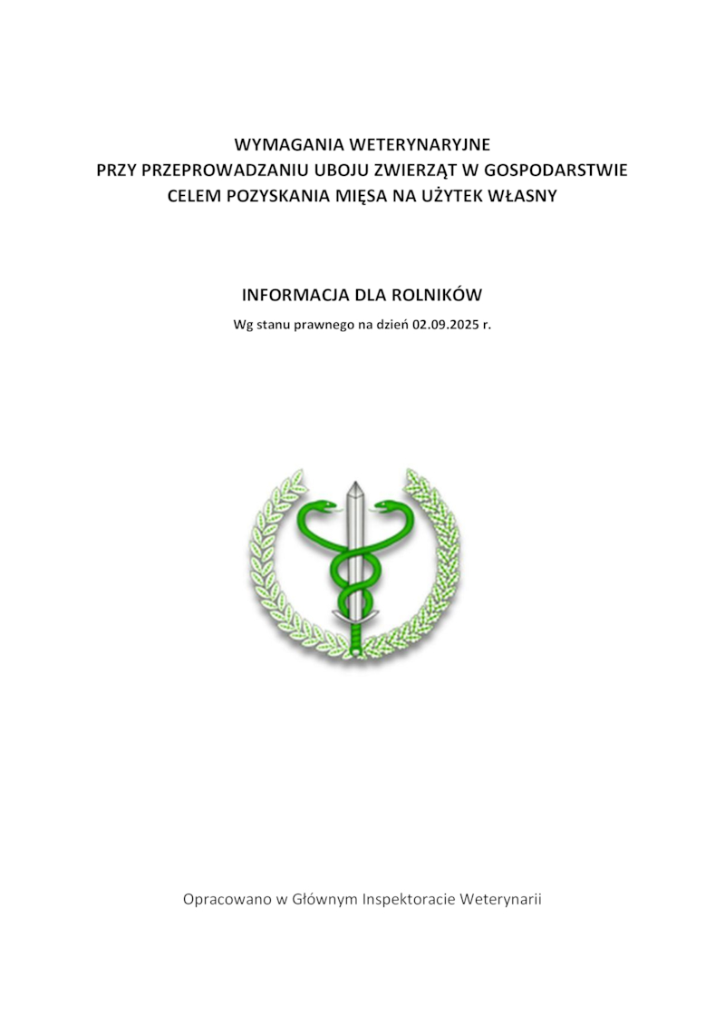 WYMAGANIA WETERYNARYJNE PRZY PRZEPROWADZANIU UBOJU ZWIERZĄT W GOSPODARSTWIE CELEM POZYSKANIA MIĘSA NA UŻYTEK WŁASNY