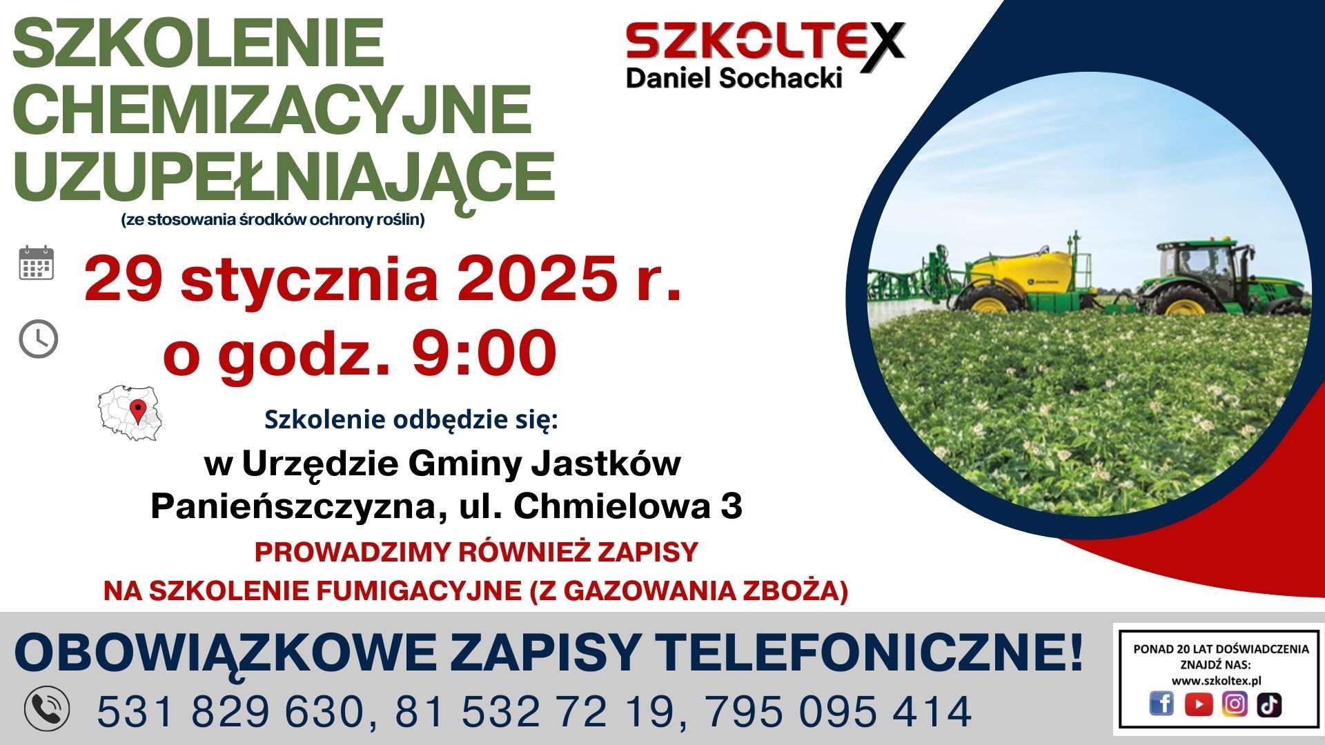 ZAPRASZAMY NA SZKOLENIE CHEMIZACYJNE UZUPEŁNIAJĄCE