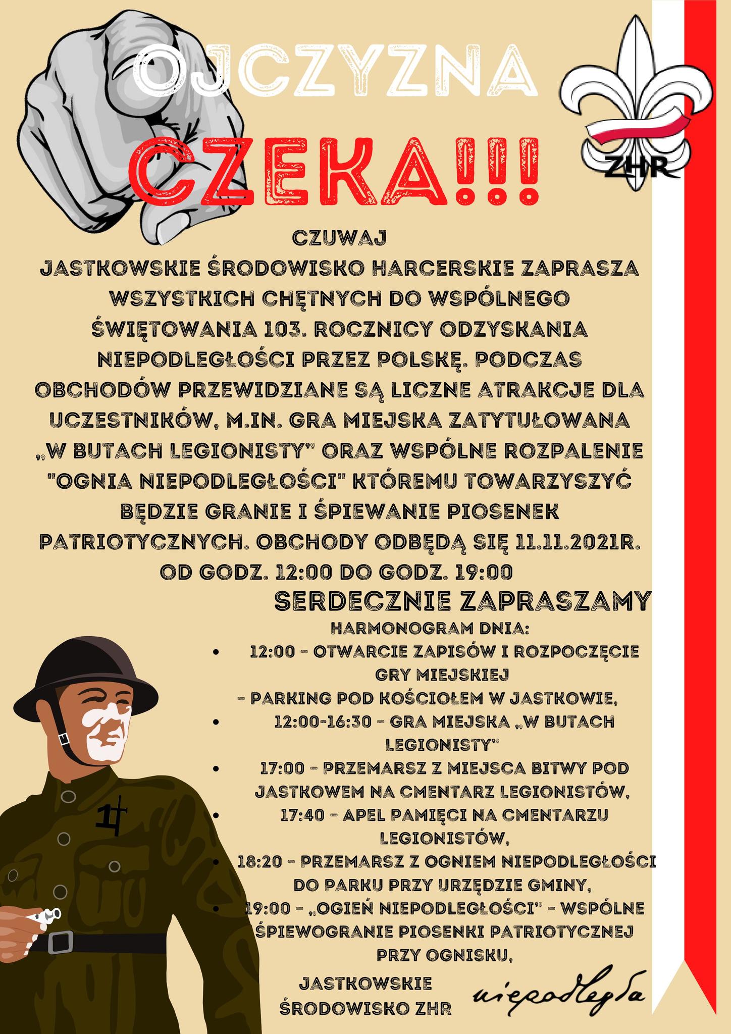 ZAPROSZENIE DO WSPÓLNEGO ŚWIĘTOWANIA 103 ROCZNICY ODZYSKANIA NIEPODLEGŁOŚCI PRZEZ POLSKĘ
