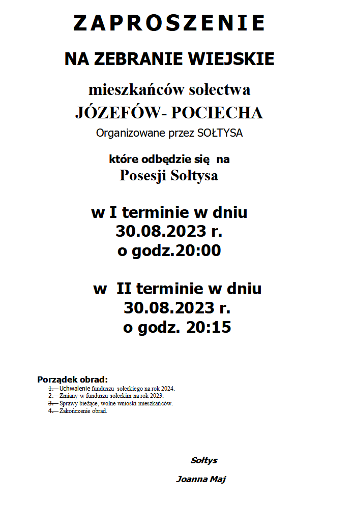 ZAPROSZENIE NA ZEBRANIE WIEJSKIE