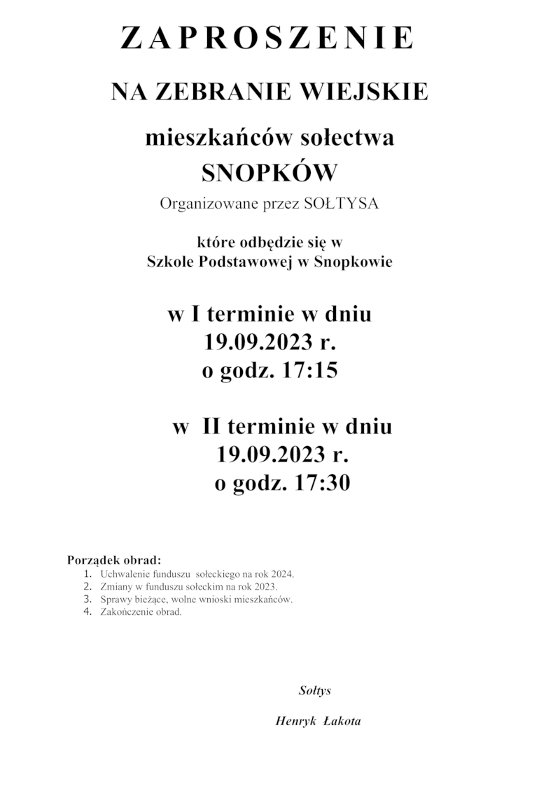 ZAPROSZENIE NA ZEBRANIE WIEJSKIE