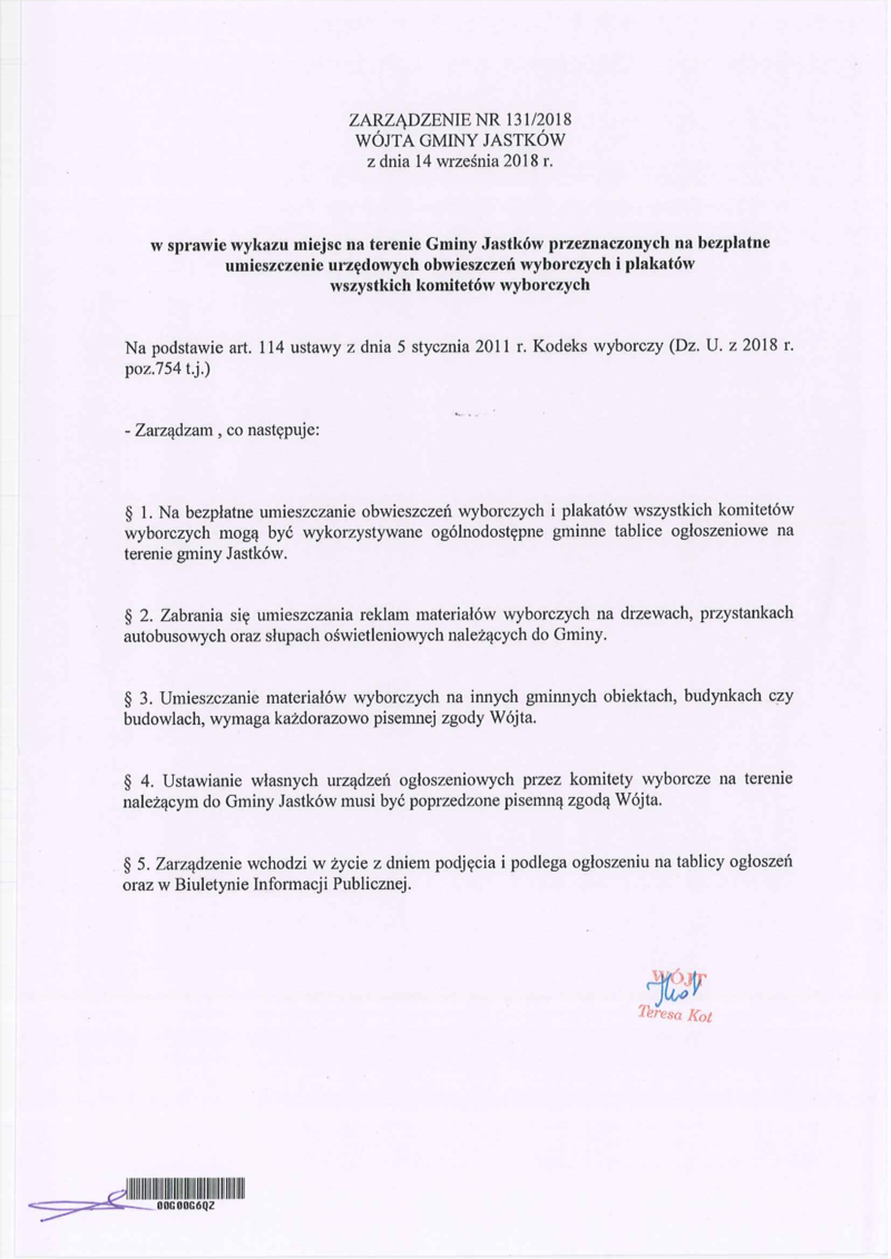 ZARZĄDZENIE - WYKAZ MIEJSC OBWIESZCZENIA WYBORCZE