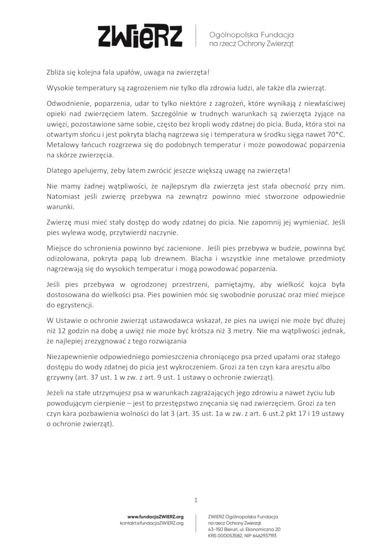 ZBLIŻA SIĘ KOLEJNA FALA UPAŁÓW, UWAGA NA ZWIERZĘTA!
