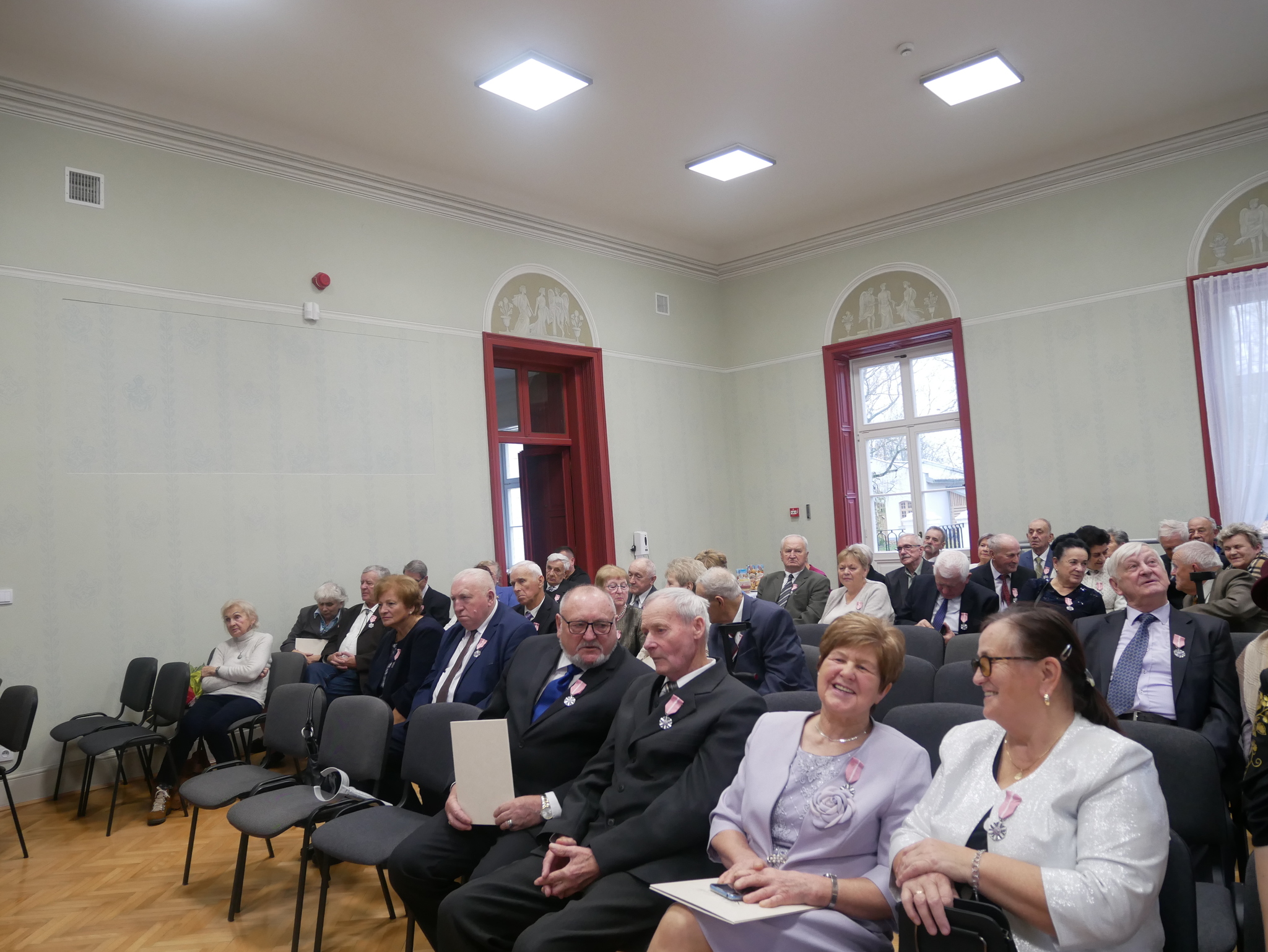 Ceremonia jubileuszowa rozpoczęła się od powitania gości przez Panią Wójt – Teresę Kot, która wraz z Panią Agatą Zasadą-Wrzesińską -Kierownikiem USC poprowadziły tę doniosłą uroczystość. Głównym punktem wydarzenia było wręczenie medali przyznanych przez Prezydenta Rzeczypospolitej Polskiej, na dowód społecznego uznania dla trwałości małżeństw z terenu gminy Jastków. Jest to piękny przykład trwającej miłości i zaangażowania w budowanie trwałych więzi małżeńskich.