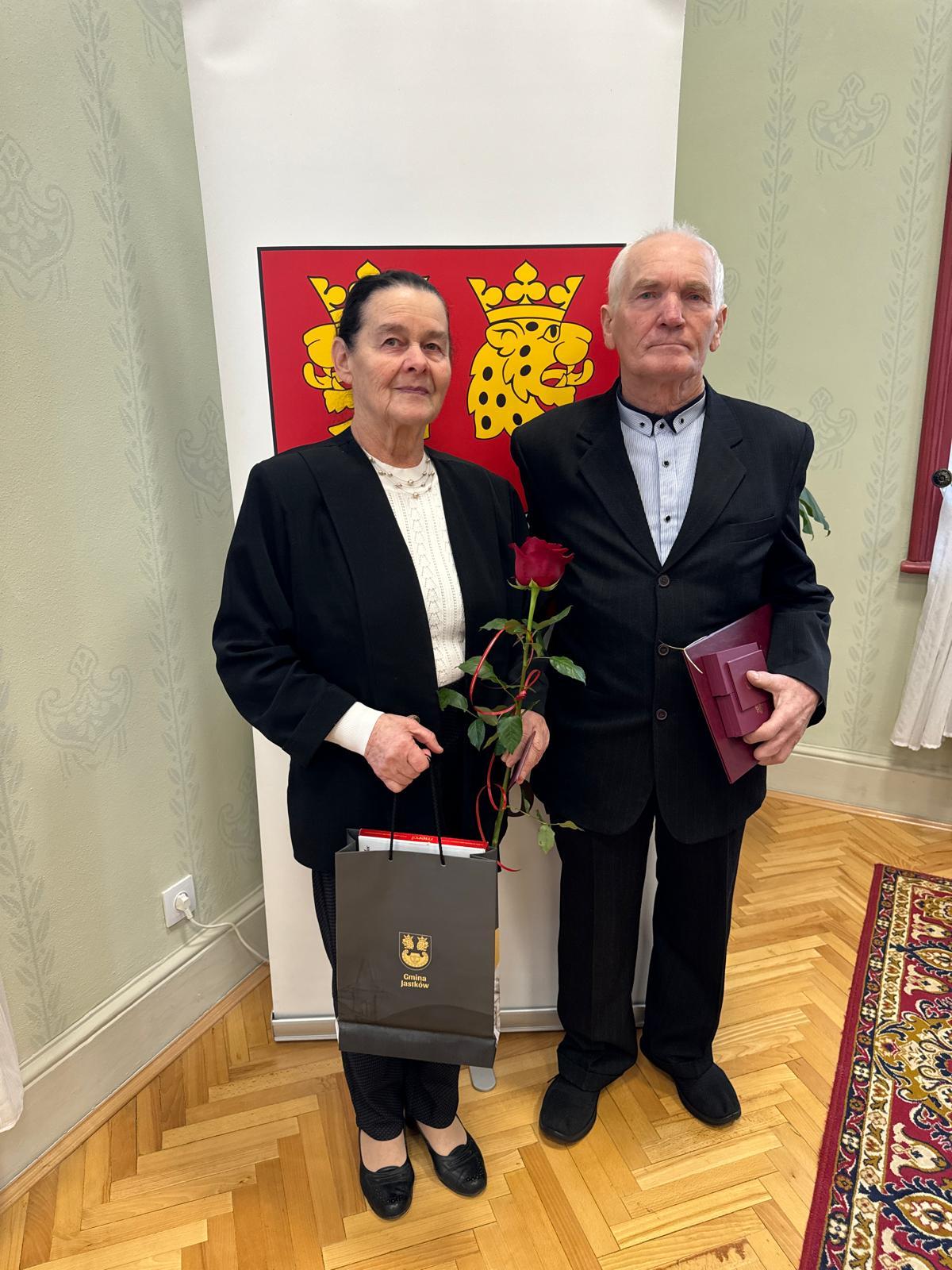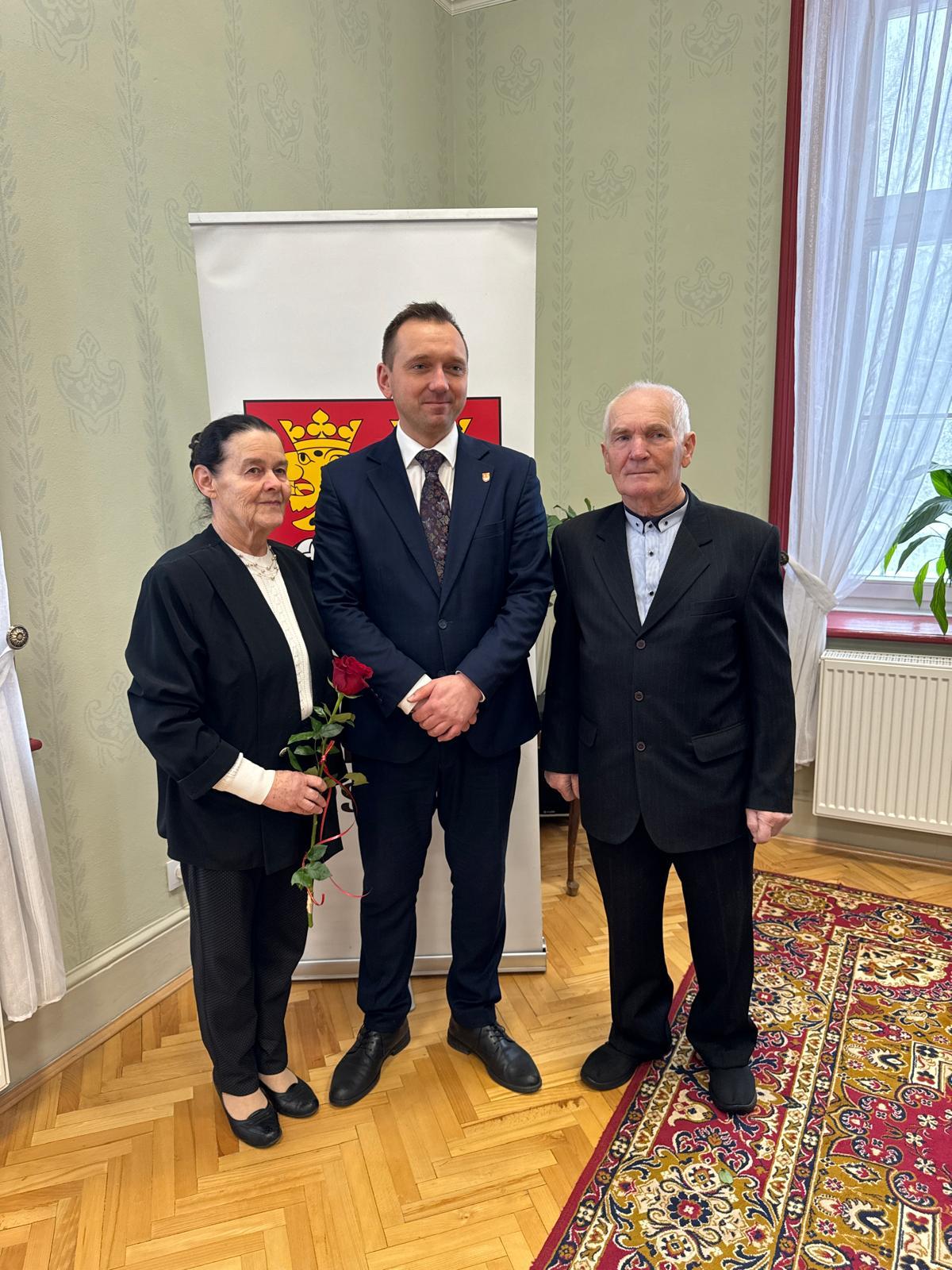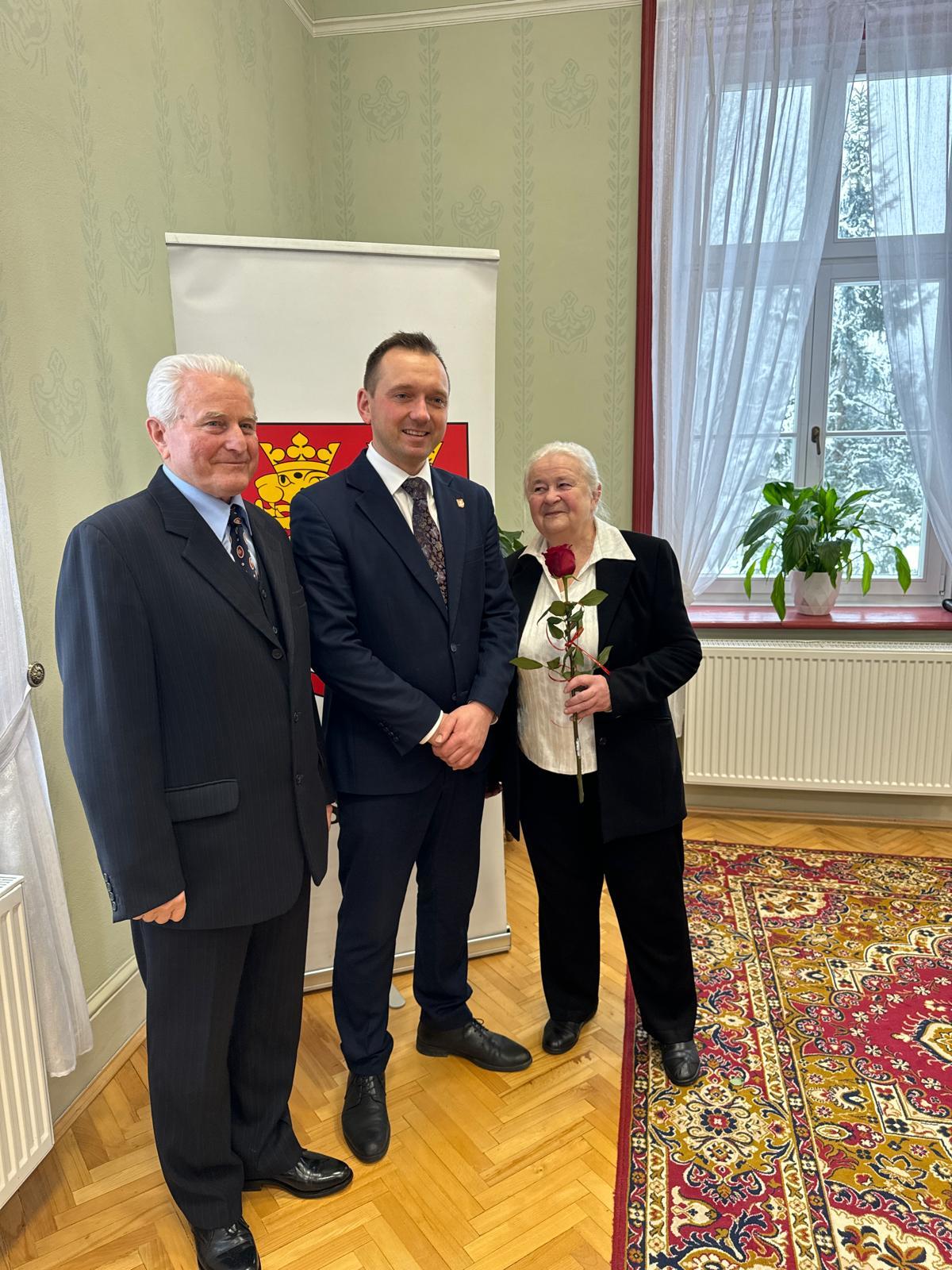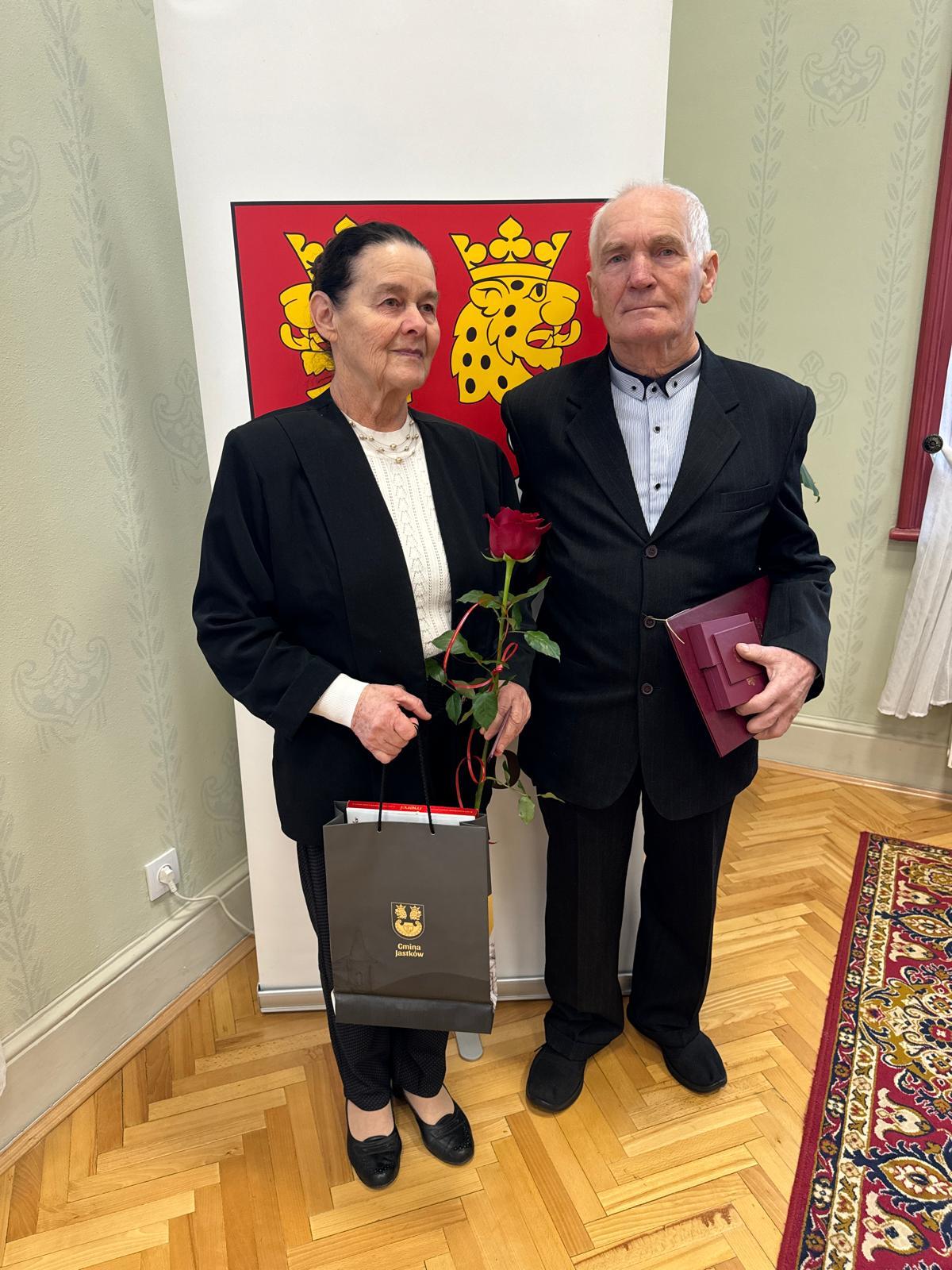 Podczas uroczystości wójt wręczył Jubilatom medale za długoletnie pożycie małżeńskie, a także pamiątkowe dyplomy i drobne upominki. To wyjątkowy moment, pełen wzruszeń i wspomnień, który pokazał, jak wielką wartością jest miłość, wzajemny szacunek i rodzinna harmonia.