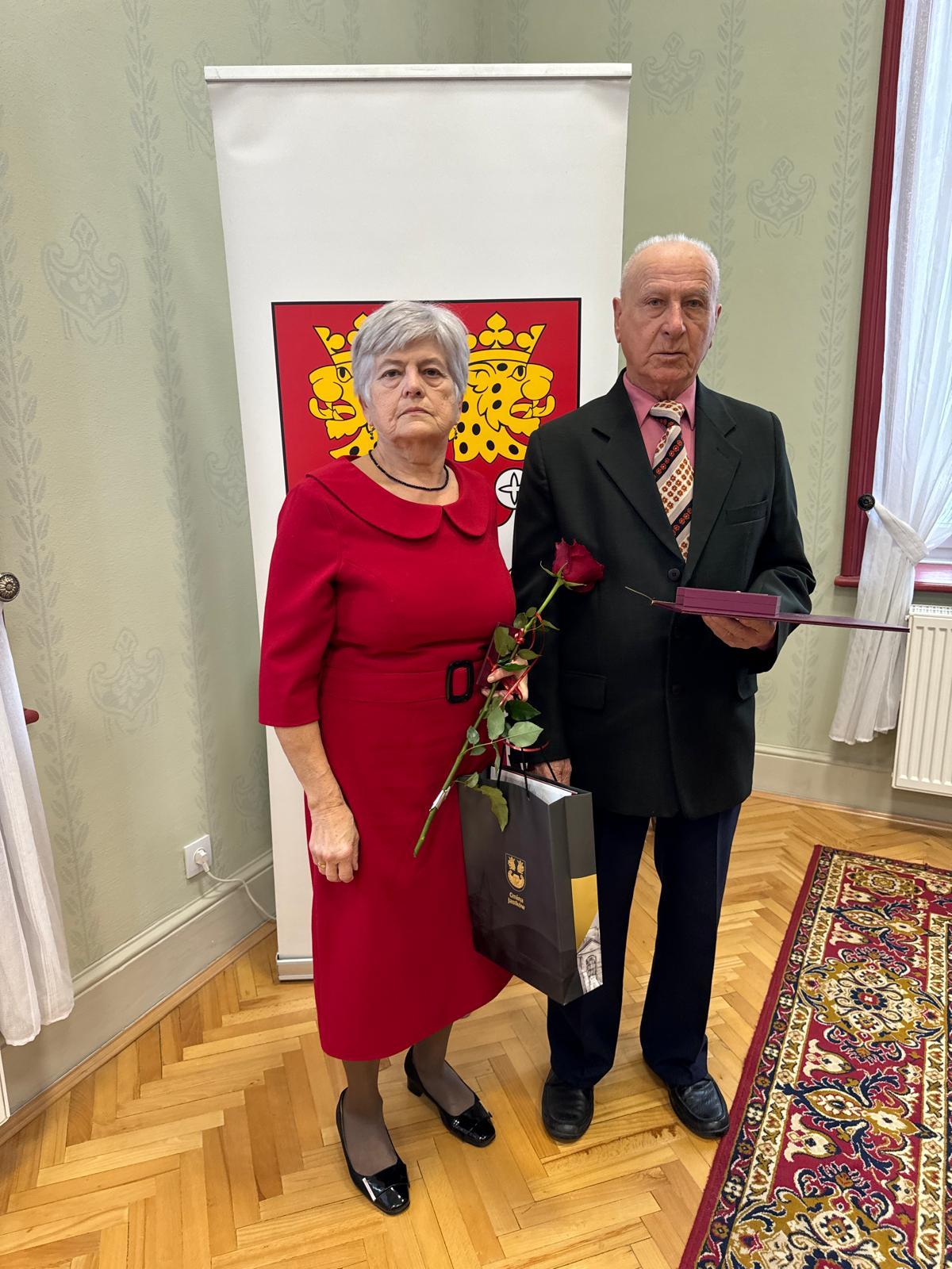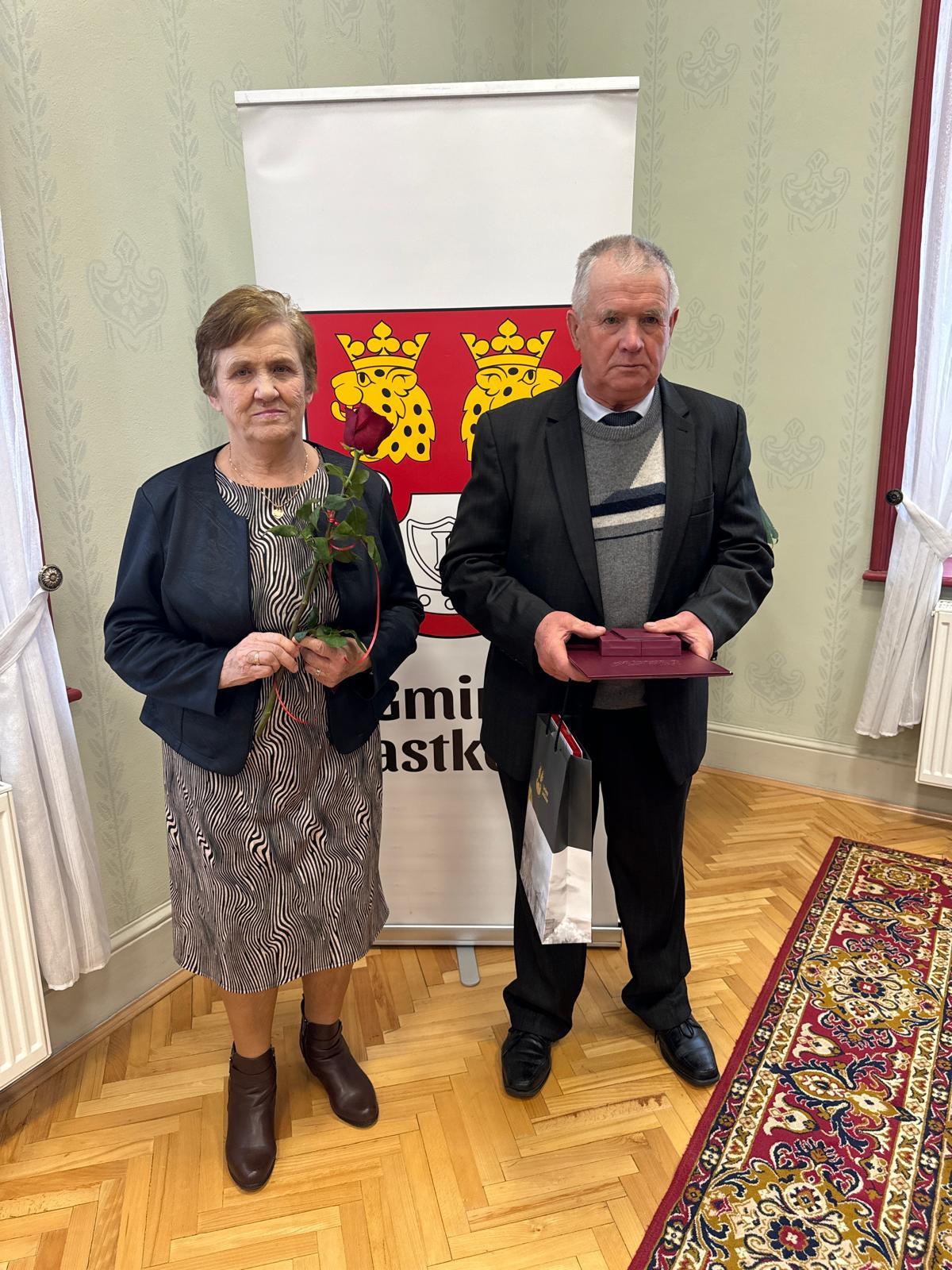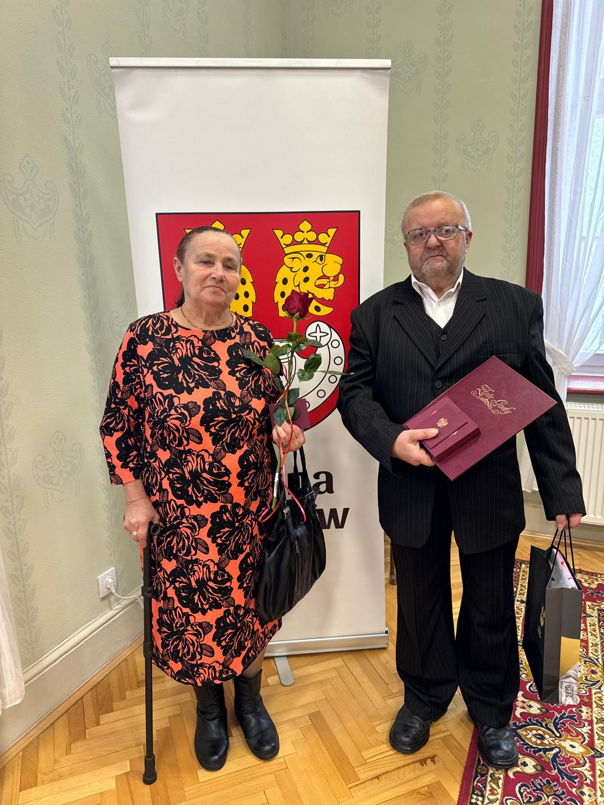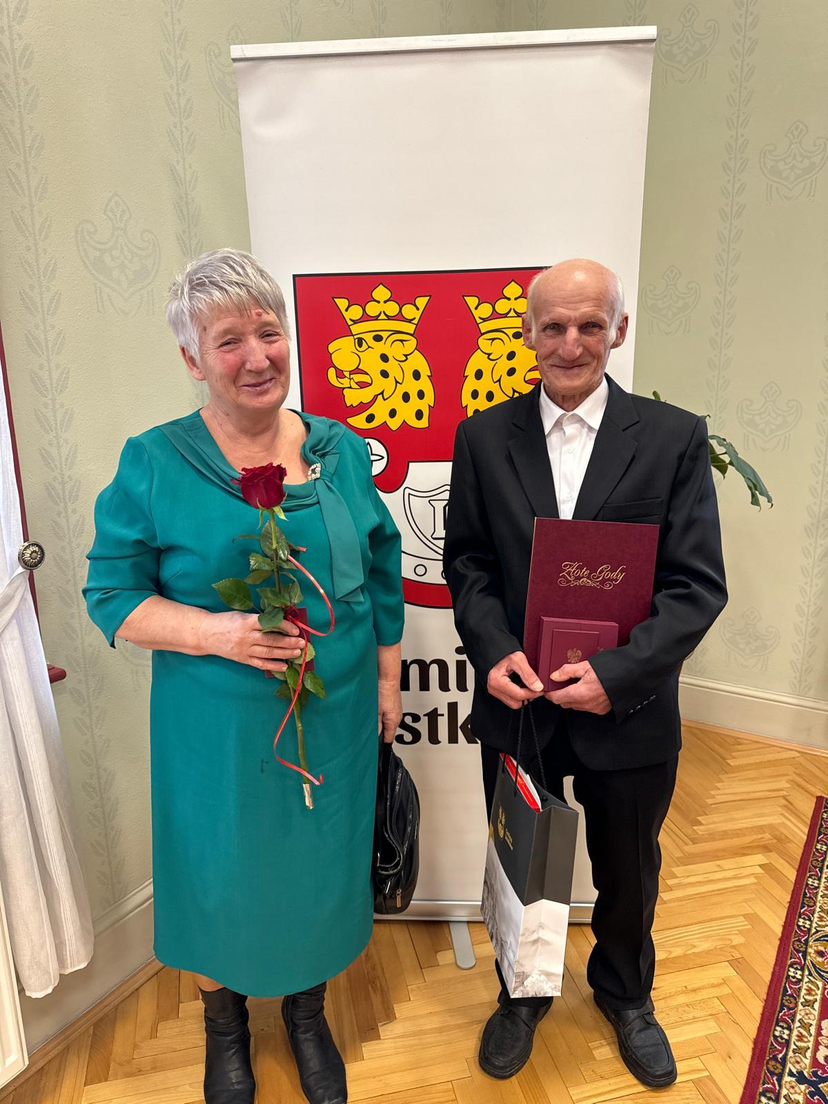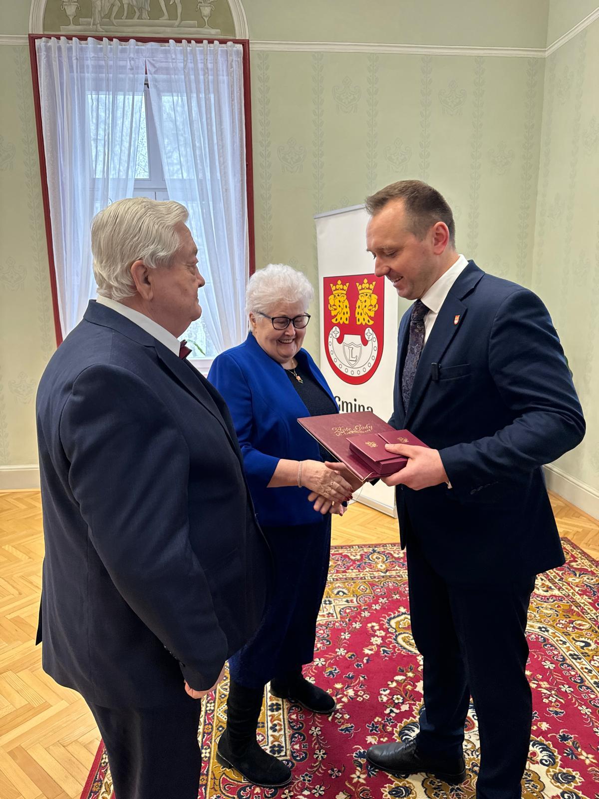 Podczas uroczystości wójt wręczył Jubilatom medale za długoletnie pożycie małżeńskie, a także pamiątkowe dyplomy i drobne upominki. To wyjątkowy moment, pełen wzruszeń i wspomnień, który pokazał, jak wielką wartością jest miłość, wzajemny szacunek i rodzinna harmonia.