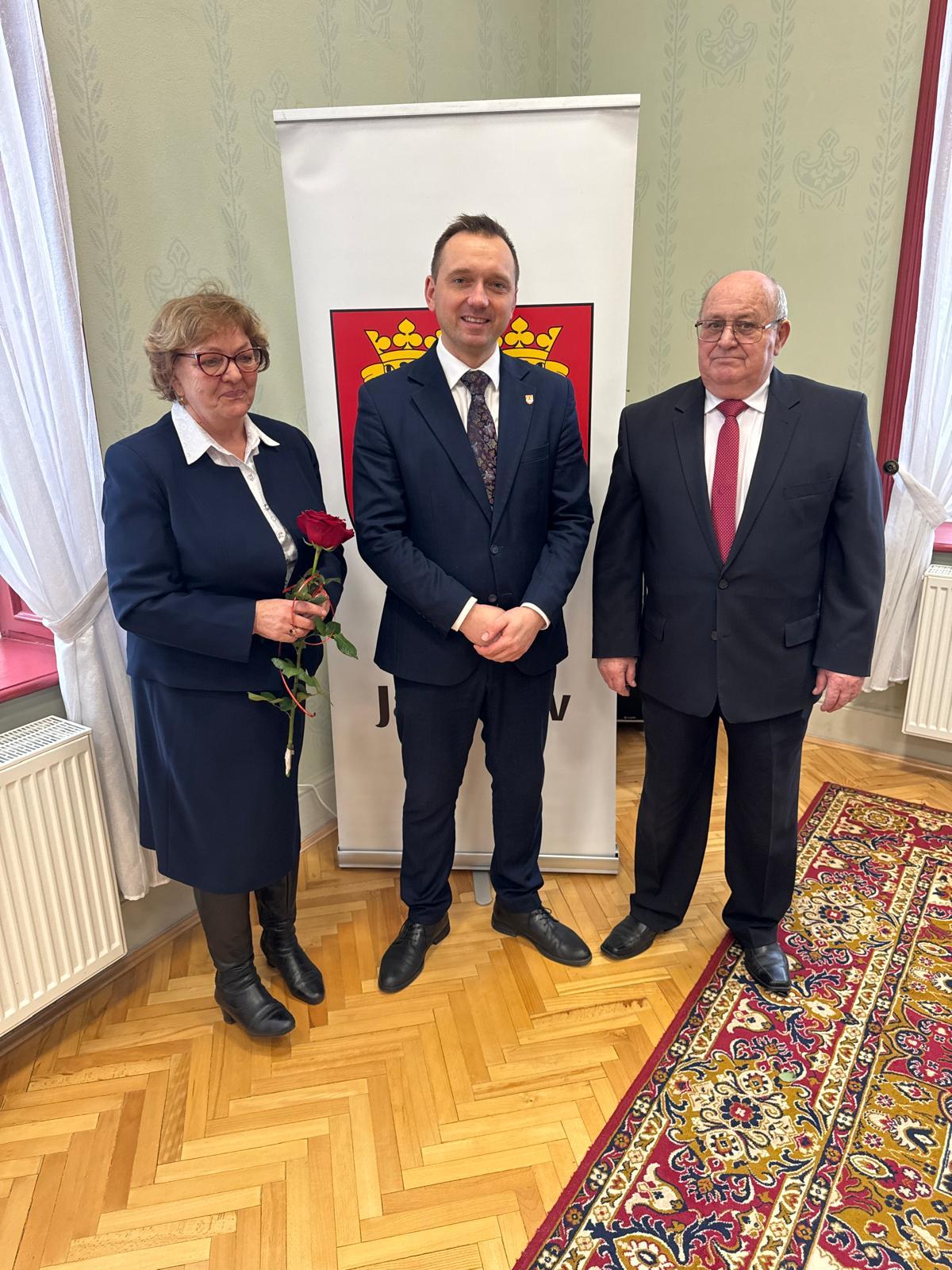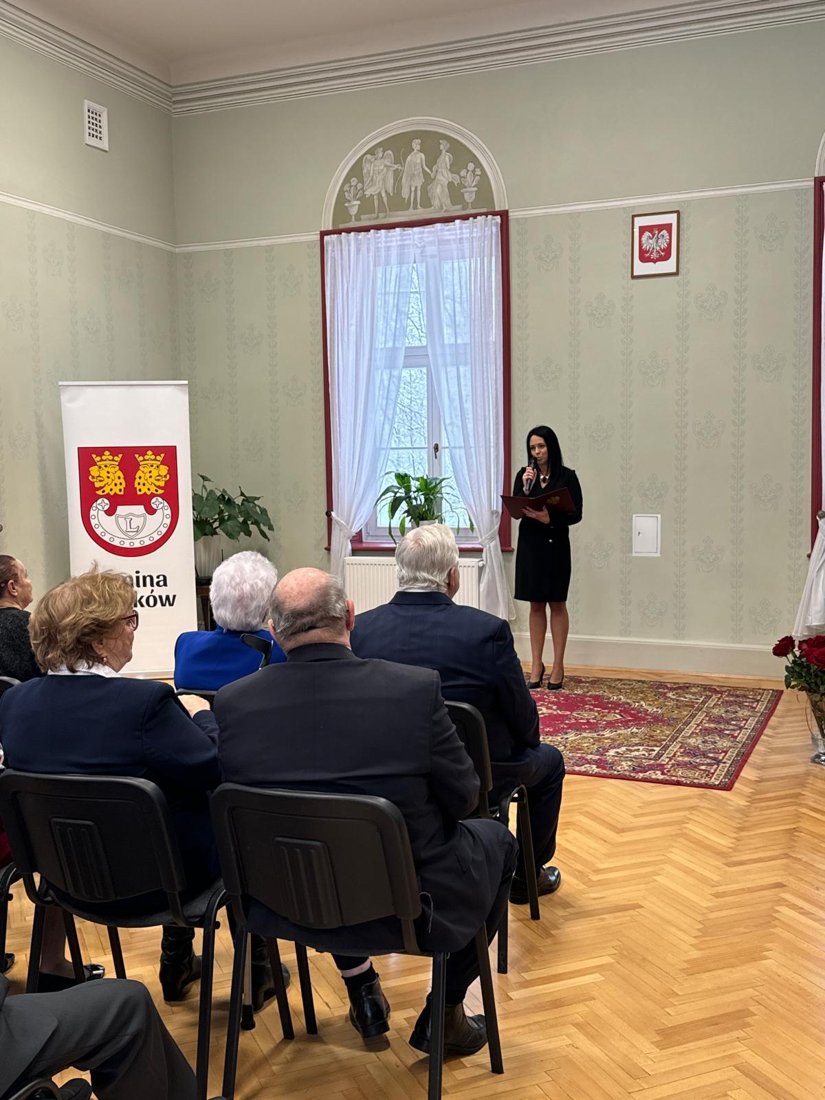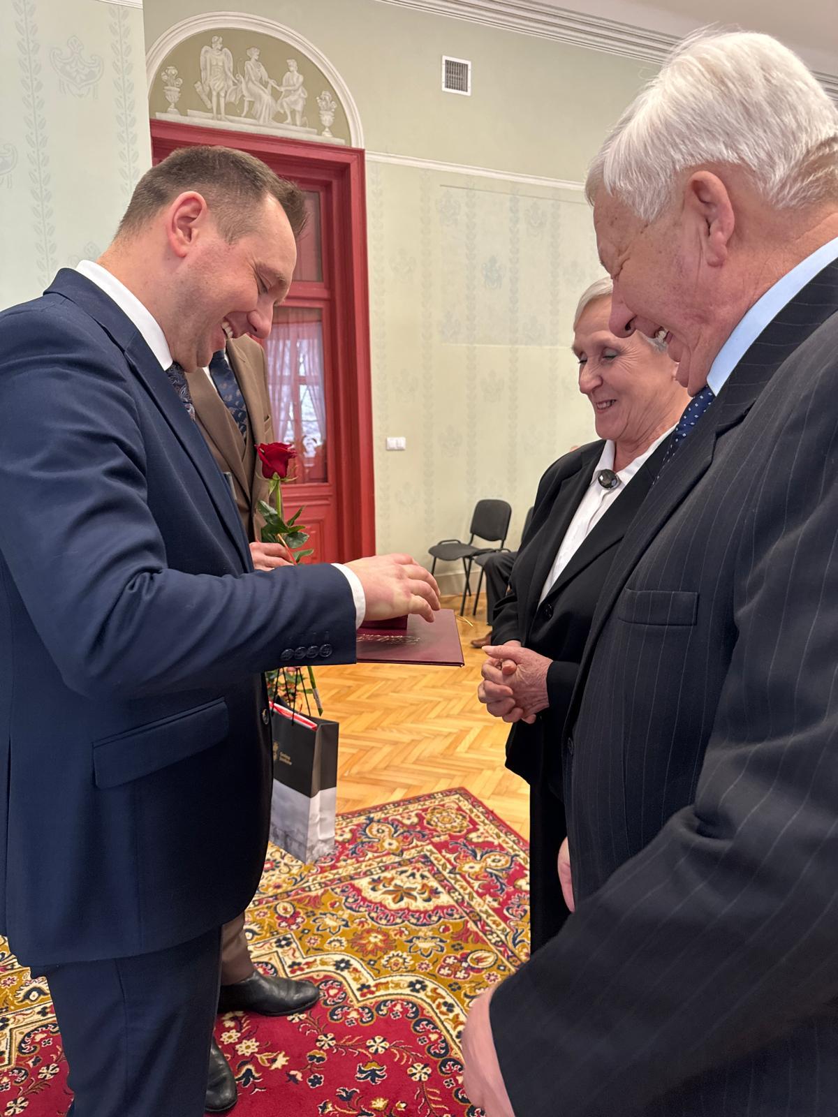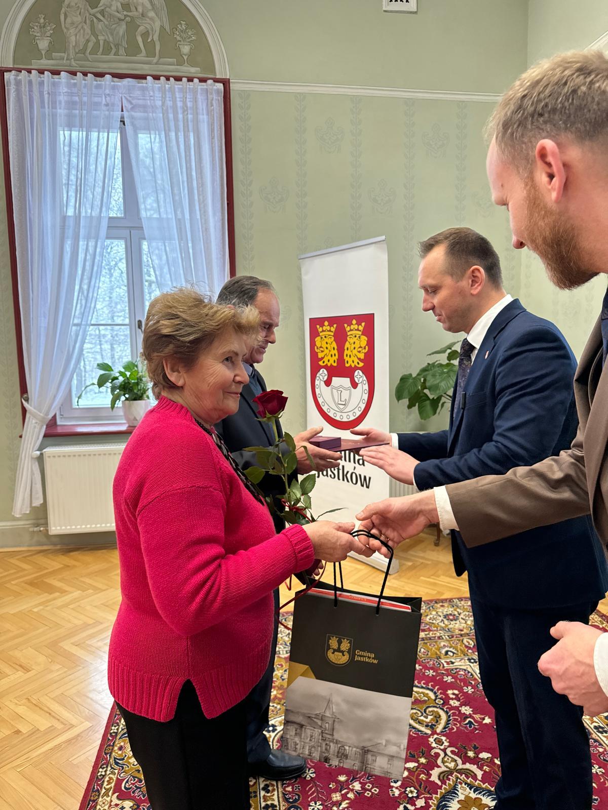 Podczas uroczystości wójt wręczył Jubilatom medale za długoletnie pożycie małżeńskie, a także pamiątkowe dyplomy i drobne upominki. To wyjątkowy moment, pełen wzruszeń i wspomnień, który pokazał, jak wielką wartością jest miłość, wzajemny szacunek i rodzinna harmonia.
