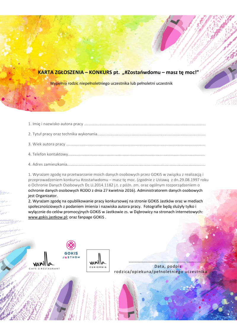 Administratorem Twoich danych będzie Wójt Gminy Jastków Panieńszczyzna, ul. Chmielowa 3, 21-002 Jastków tel. 81 502-04-25;