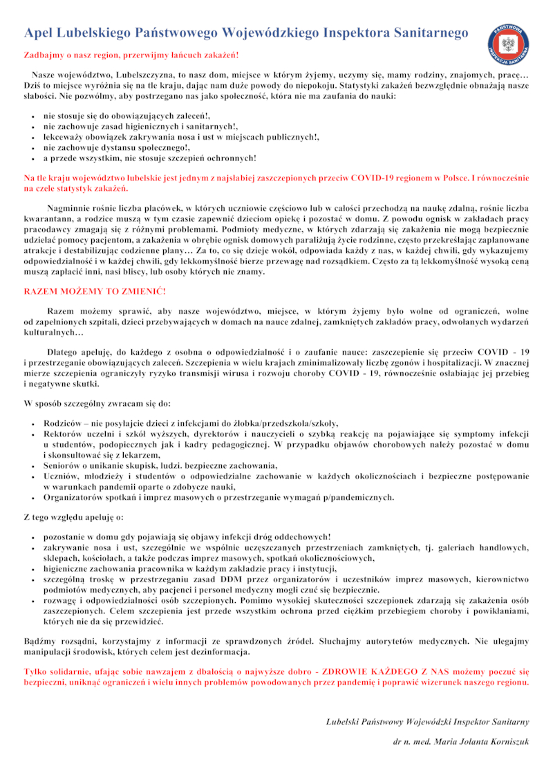 APEL LUBELSKIEGO PAŃSTWOWEGO WOJEWÓDZKIEGO INSPEKTORA SANITARNEGO
