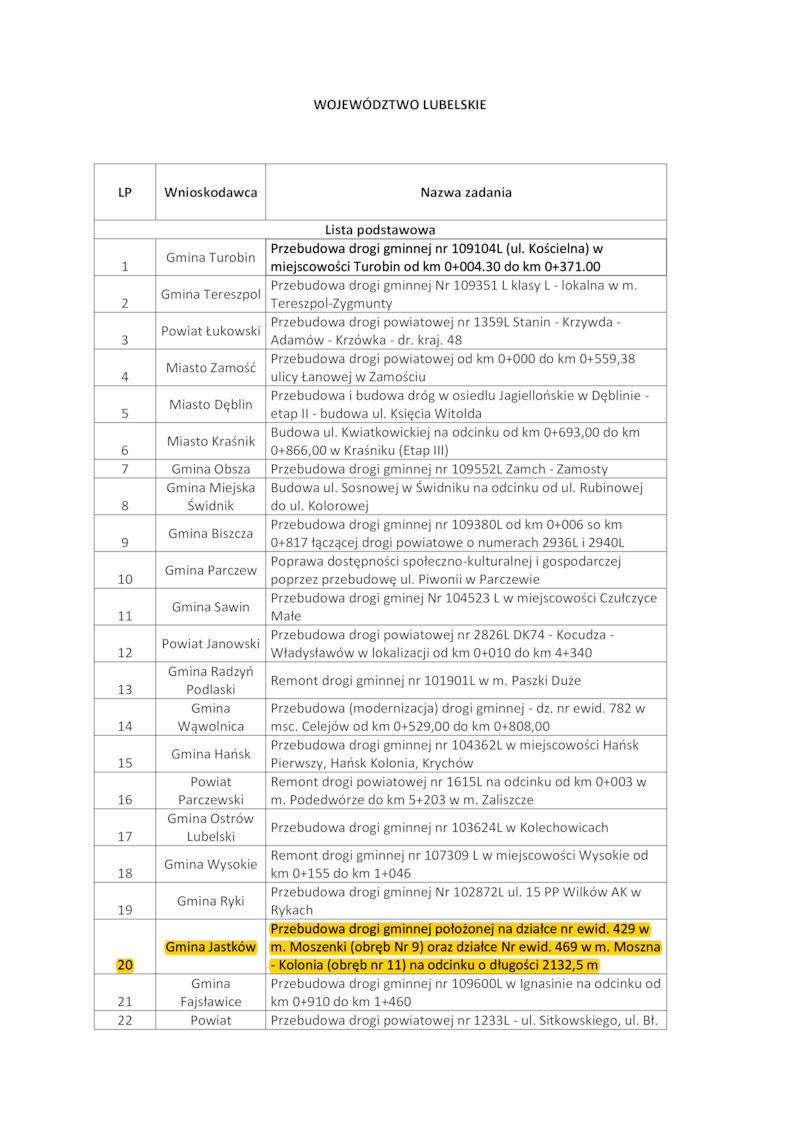 Jest nam miło poinformować, że Gmina Jastków znalazła się na liście samorządów, które otrzymają dotację w ramach Rządowego Programu na rzecz rozwoju konkurencyjności regionów poprzez wsparcie lokalnej infrastruktury drogowej.