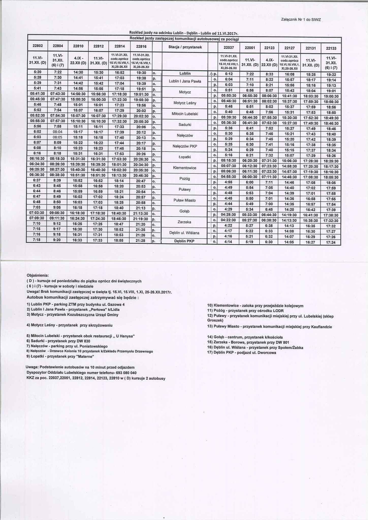 Informacja dot. Rozkładu jazdy zastępczej komunikacji autobusowej za pociągi na odcinku Lublin - Dęblin - Lublin od 11.06.2017r.