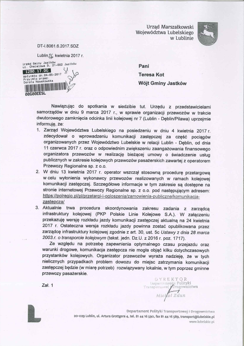 INFORMACJA W SPRAWIE WPROWADZENIA KOMUNIKACJI ZASTĘPCZEJ W ZWIĄZKU Z PRZEBUDOWĄ LINII KOLEJOWEJ LUBLIN - DĘBLIN