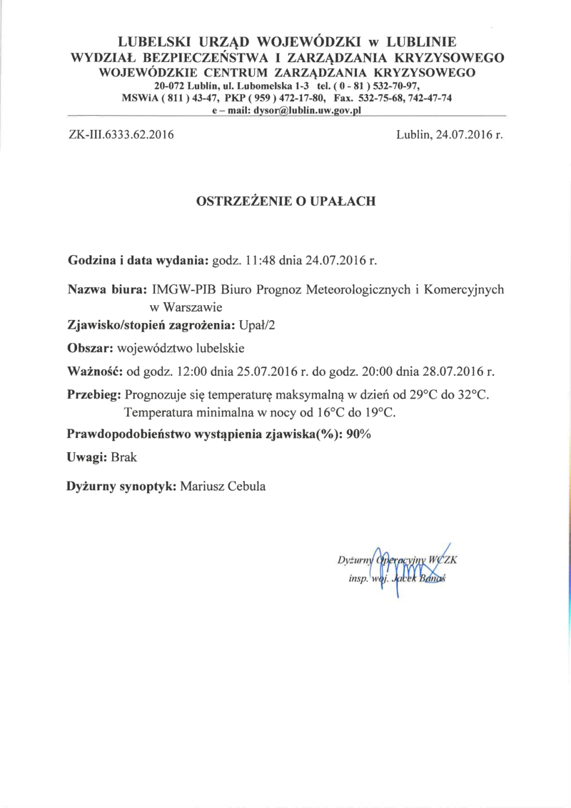 1. Upał z dn. 24.07.2016 r. 25 lip 2016 — 41,5 KB