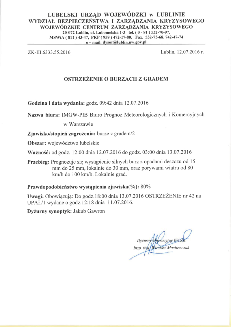 OSTRZEŻENIE O BURZACH Z GRADEM