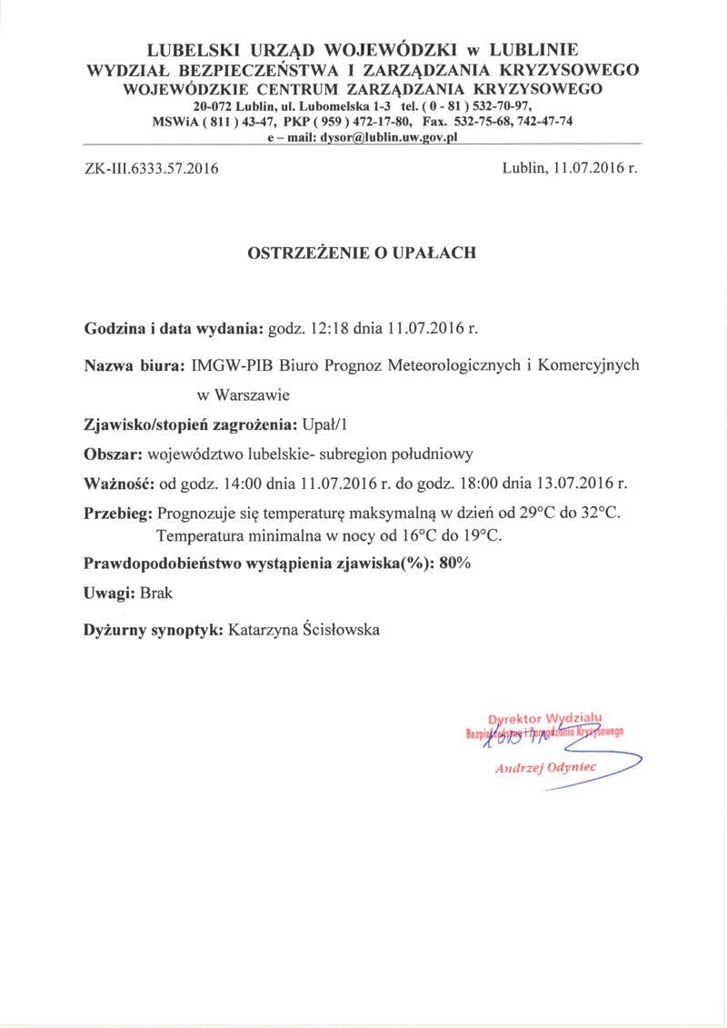 OSTRZEŻENIE O UPAŁACH