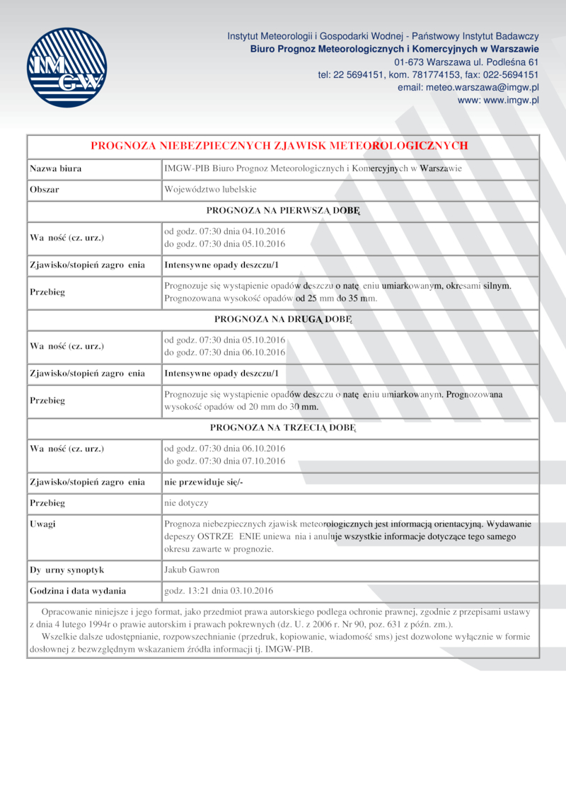 PROGNOZA NIEBEZPIECZNYCH ZJAWISK METEOROLOGICZNYCH