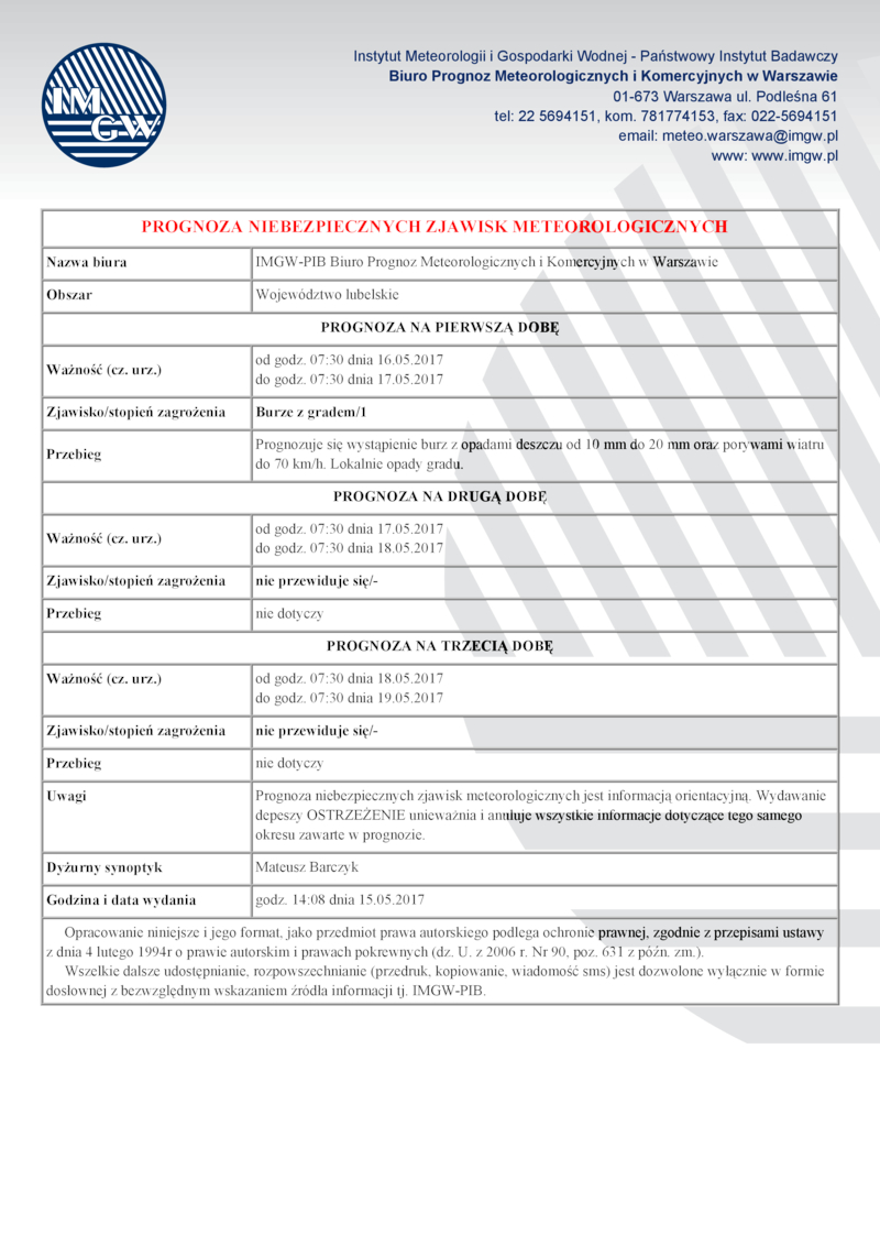 PROGNOZA NIEBEZPIECZNYCH ZJAWISK METEOROLOGICZNYCH
