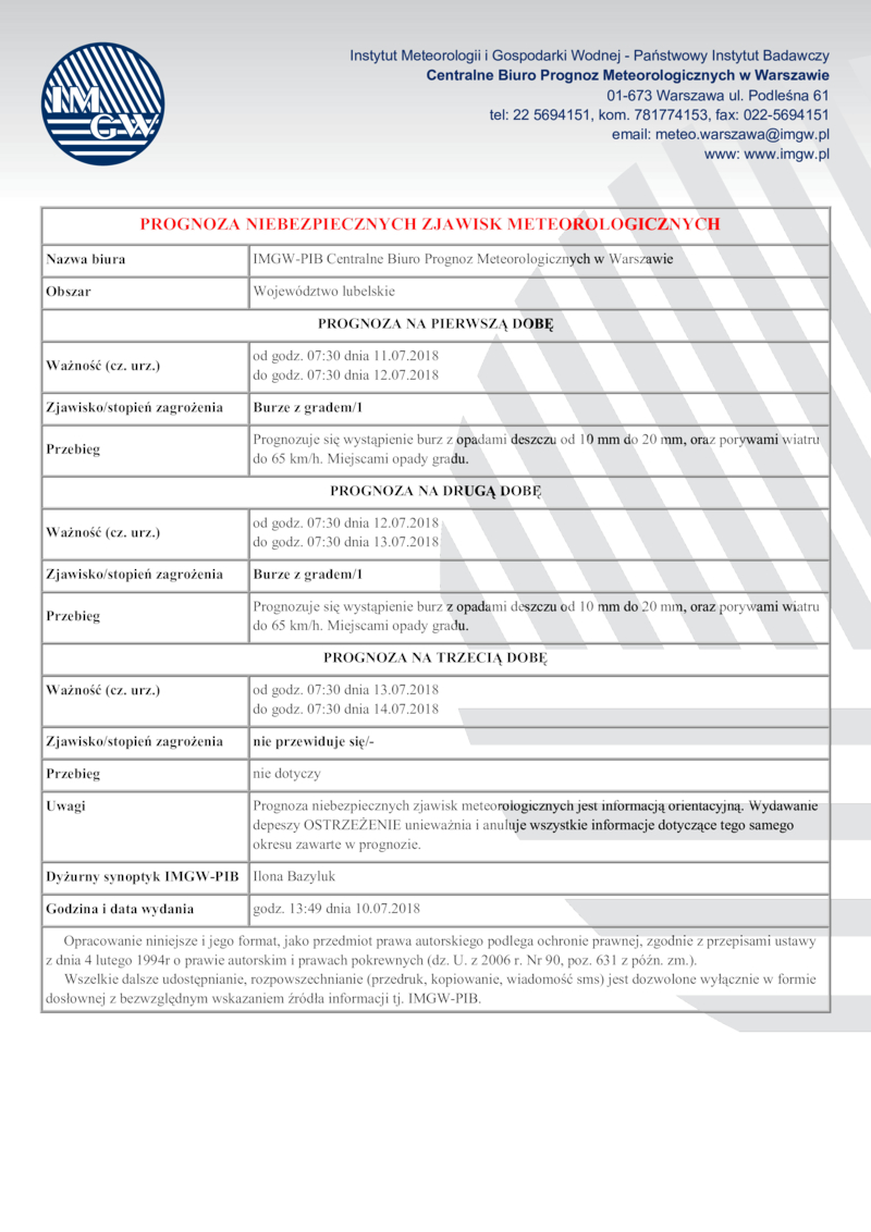 PROGNOZA NIEBEZPIECZNYCH ZJAWISK METEOROLOGICZNYCH