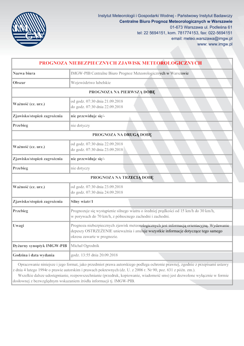 PROGNOZA NIEBEZPIECZNYCH ZJAWISK METEOROLOGICZNYCH