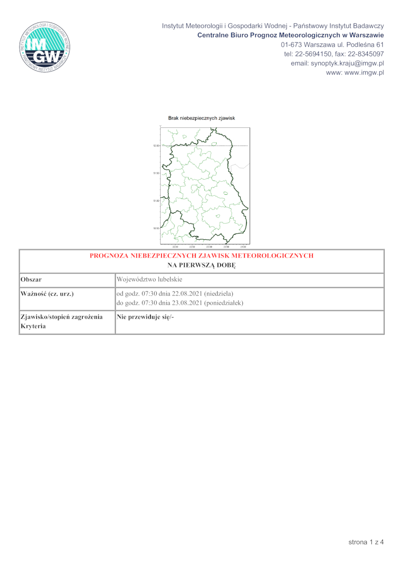 PROGNOZA NIEBEZPIECZNYCH ZJAWISK METEOROLOGICZNYCH