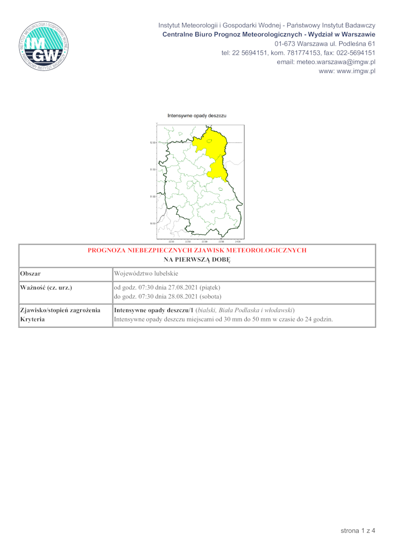 PROGNOZA NIEBEZPIECZNYCH ZJAWISK METEOROLOGICZNYCH