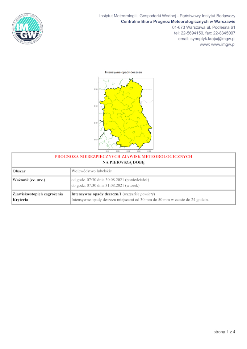 PROGNOZA NIEBEZPIECZNYCH ZJAWISK METEOROLOGICZNYCH