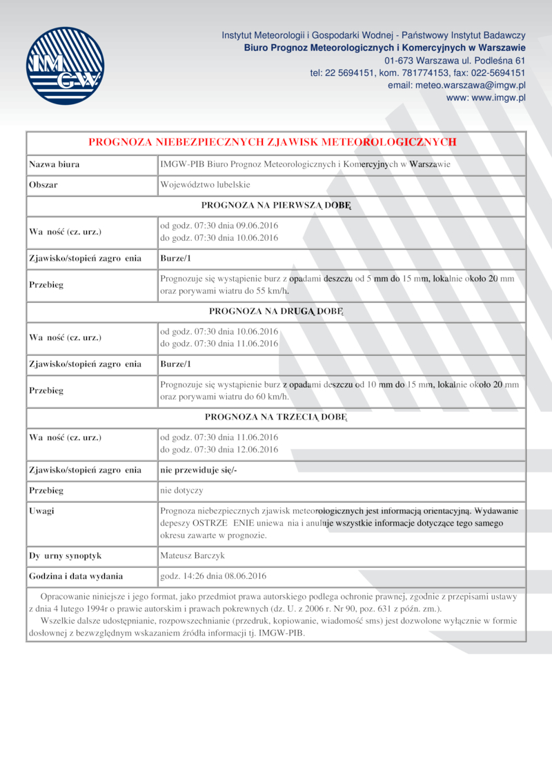 PROGNOZA NIEBEZPIECZNYCH ZJAWISK METEOROLOGICZNYCH