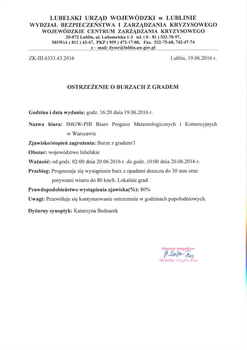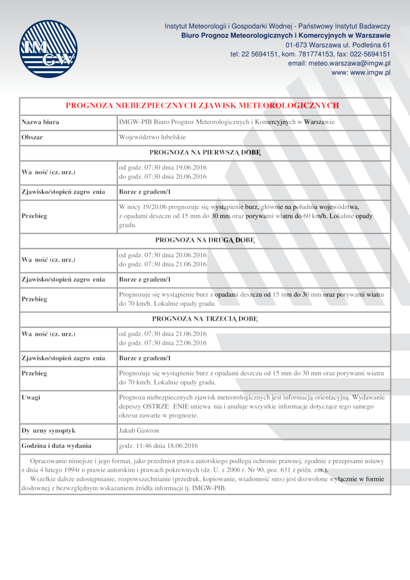 PROGNOZA NIEBEZPIECZNYCH ZJAWISK