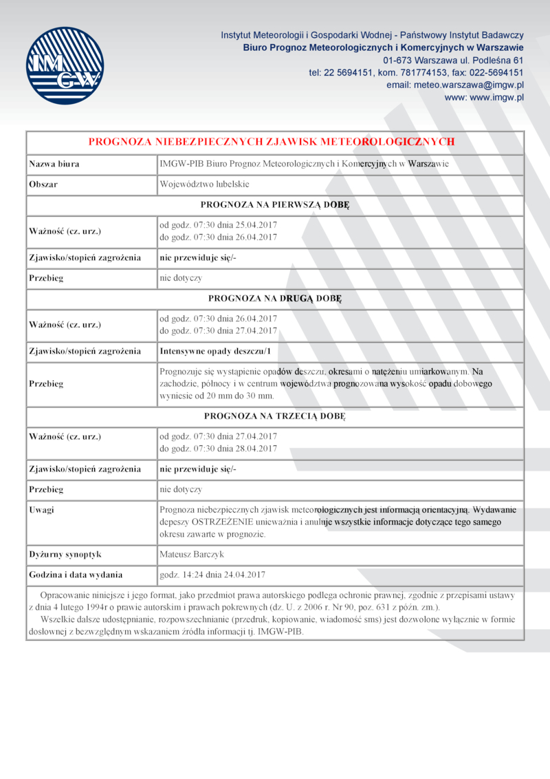 PROGNOZNA NIEBEZPIECZNYCH ZJAWISK METEOROLOGICZNYCH
