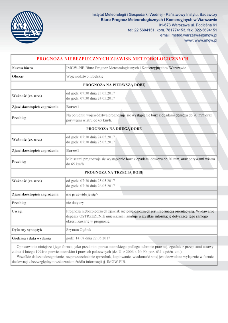 PROGNOZNA NIEBEZPIECZNYCH ZJAWISK METEOROLOGICZNYCH