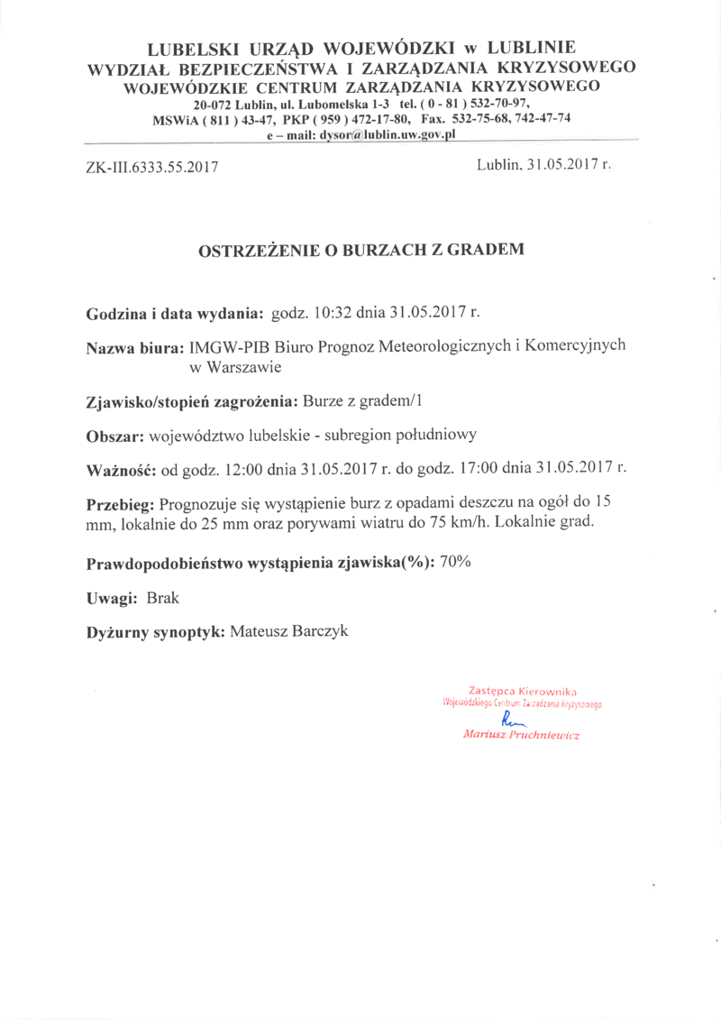 PROGNOZNA NIEBEZPIECZNYCH ZJAWISK METEOROLOGICZNYCH