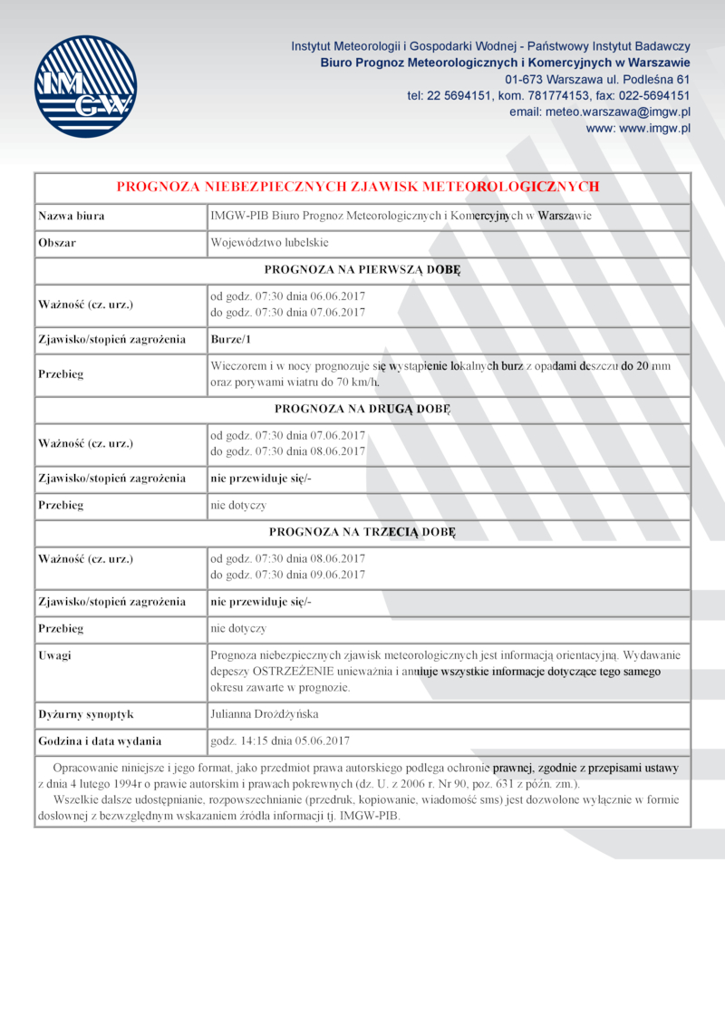 PROGNOZNA NIEBEZPIECZNYCH ZJAWISK METEOROLOGICZNYCH