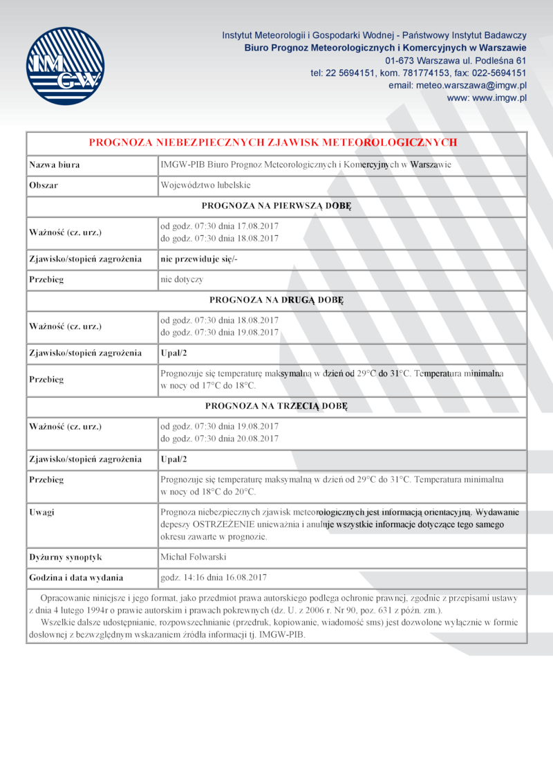 PROGNOZNA NIEBEZPIECZNYCH ZJAWISK METEOROLOGICZNYCH