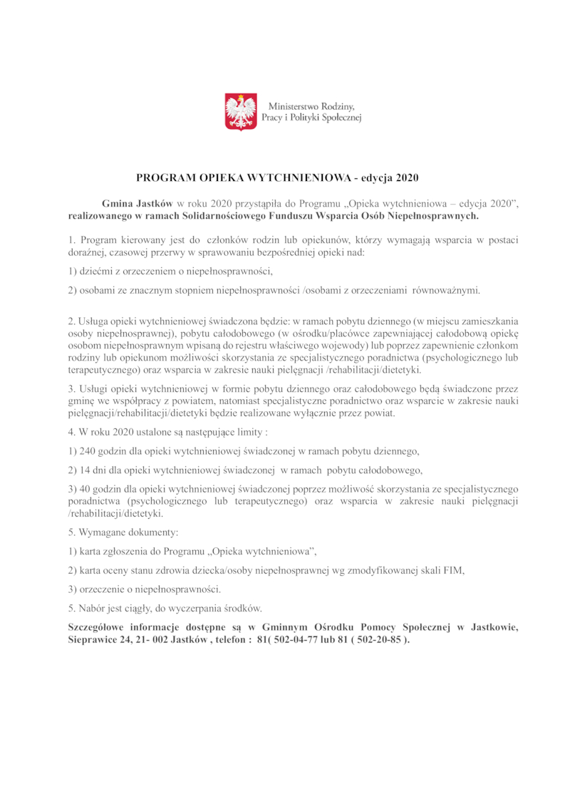 PROGRAM OPIEKA WYTCHNIENIOWA - EDYCJA 2020