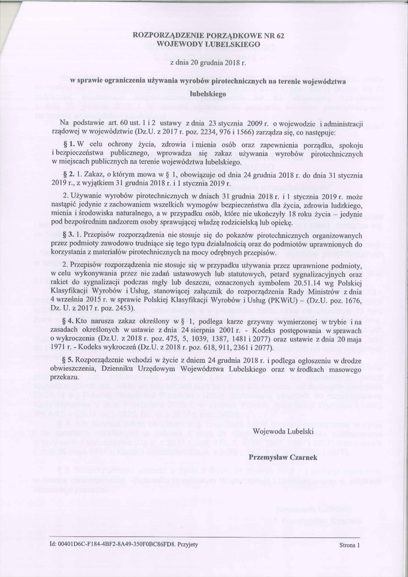 ROZPORZĄDZENIE PORZĄDKOWE WOJEWODY LUBELSKIEGO